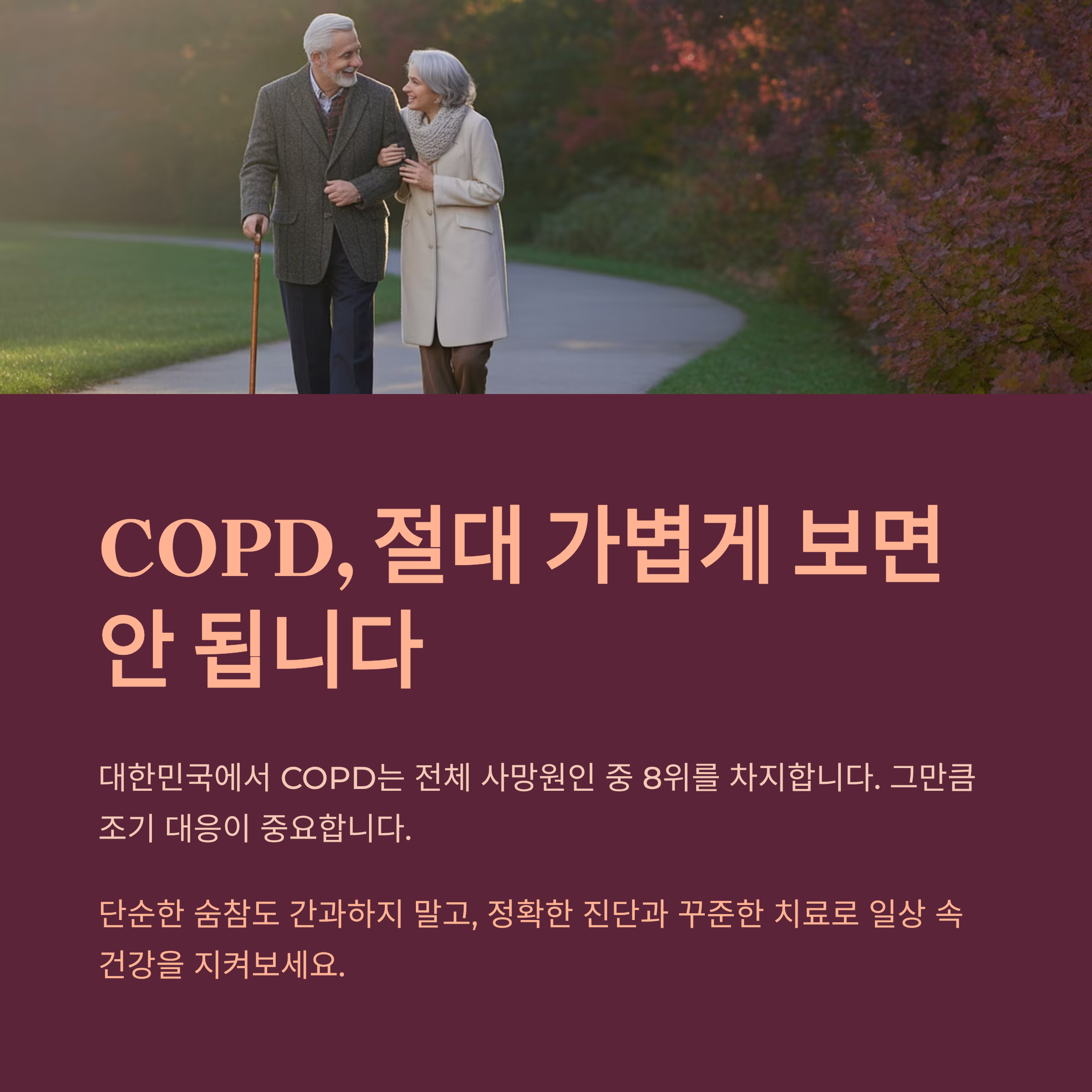 대한민국에서 COPD는 전체 사망원인 중 8위를 차지합니다. 그만큼 조기 대응이 중요합니다. 단순한 숨참도 간과하지 말고, 정확한 진단과 꾸준한 치료로 일상 속 건강을 지켜보세요.