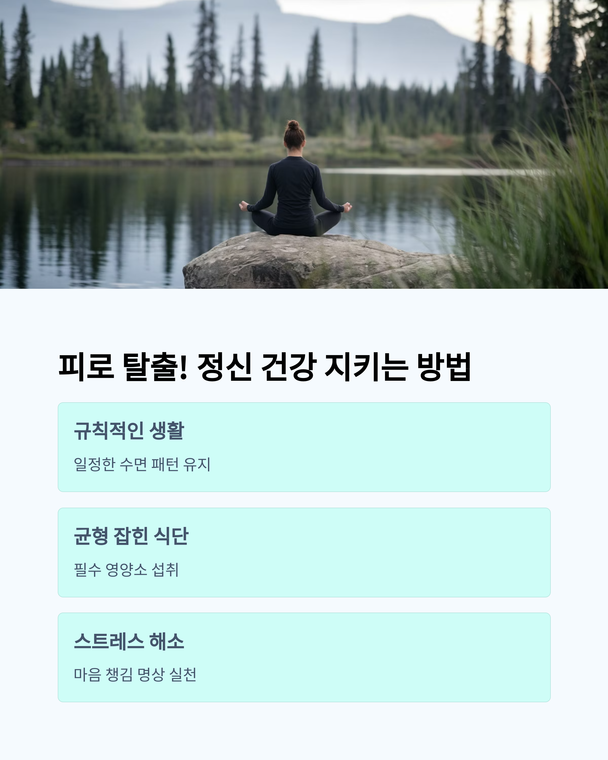 | 정신 건강과의 관계 | 피로가 심할수록 우울감, 불안감, 기억력 저하가 나타날 수 있습니다. |