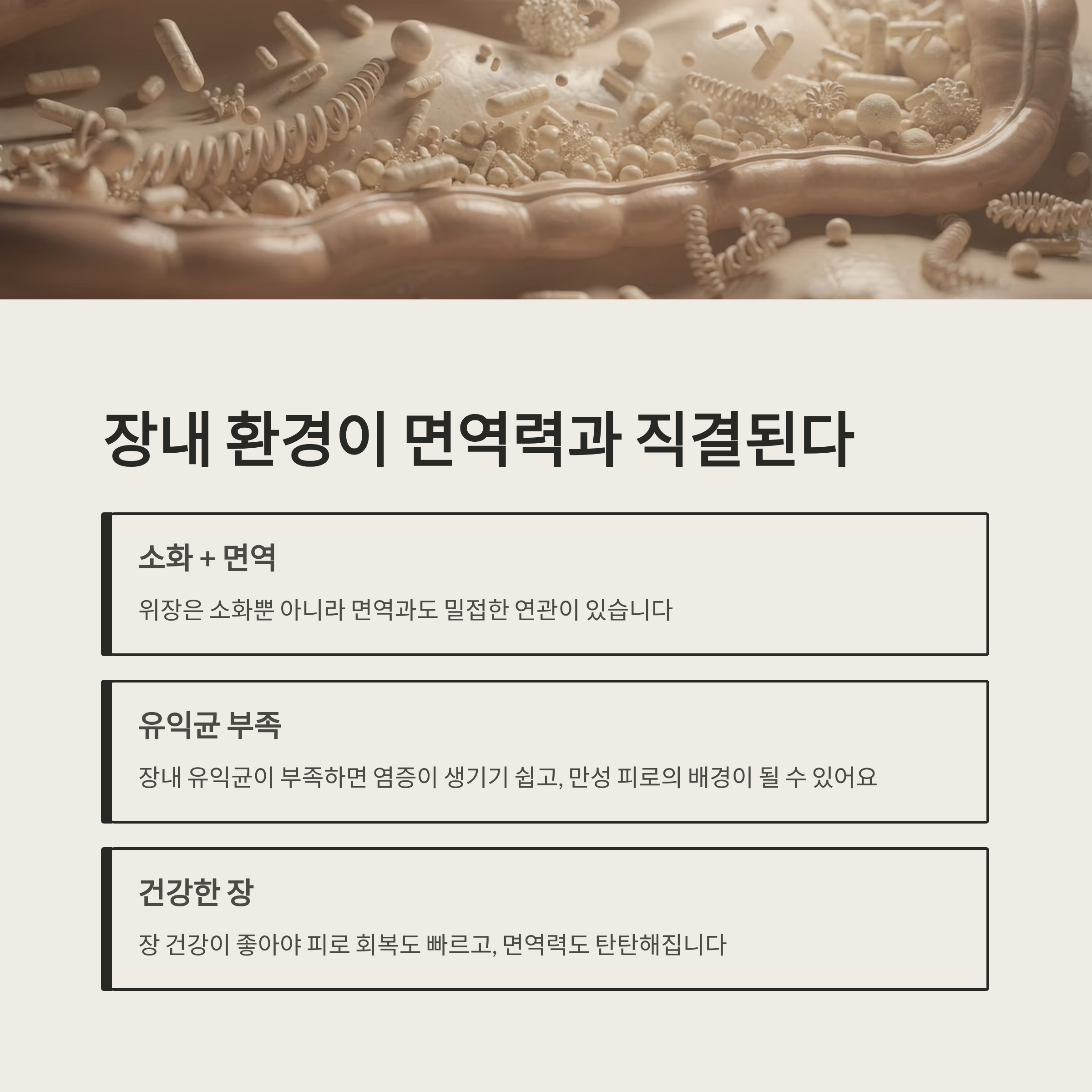 장 건강이 좋아야 피로 회복도 빠르고, 면역력도 탄탄해지는 겁니다.