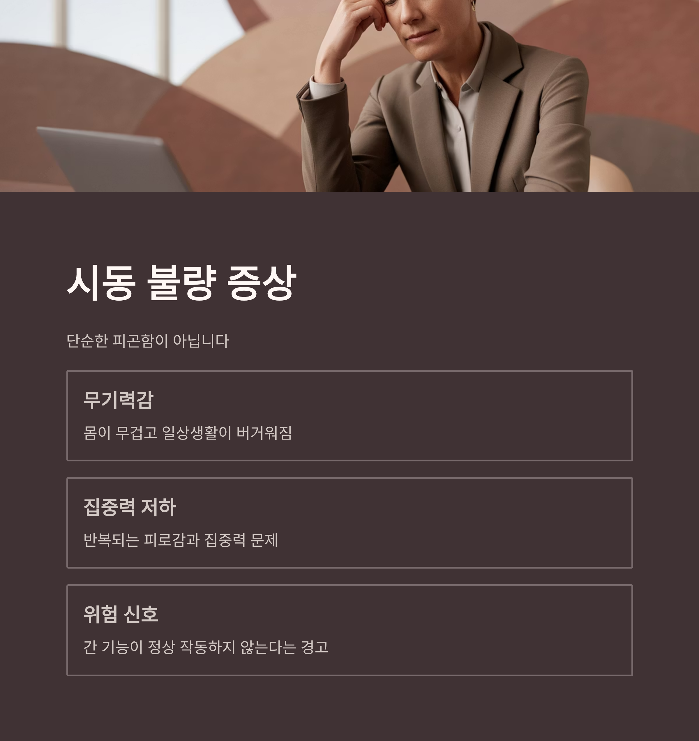 피로감, 집중력 저하, 무기력 등이 반복되지만 많은 분들이 대수롭지 않게 넘기는 경우가 많죠.