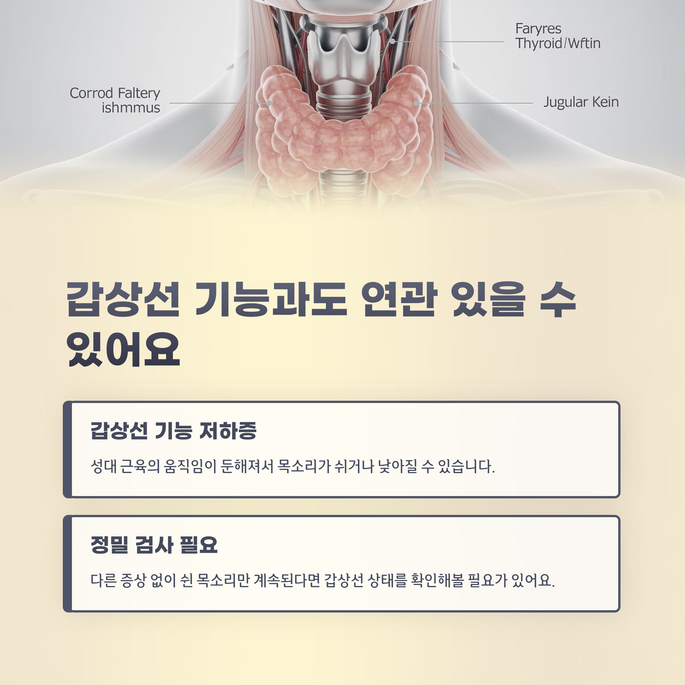 갑상선 기능 저하증이 있으면 성대 근육의 움직임이 둔해져서
