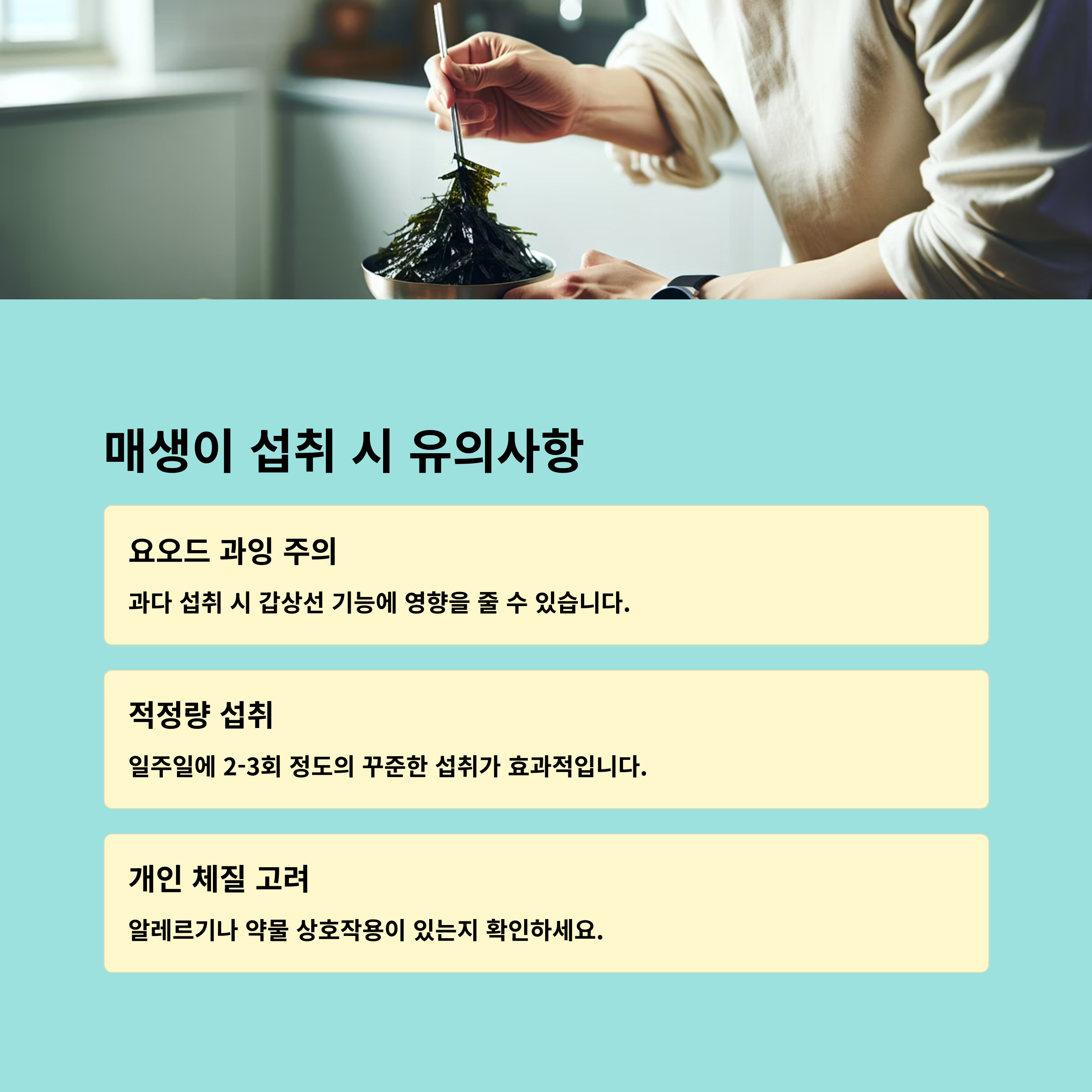 매일 섭취해도 무방하지만, 요오드 함량이 높아 1인분(70g) 기준을 넘지 않도록 주의가 필요합니다. 특히 갑상선 질환이 있다면 전문의와 상담이 필요합니다.