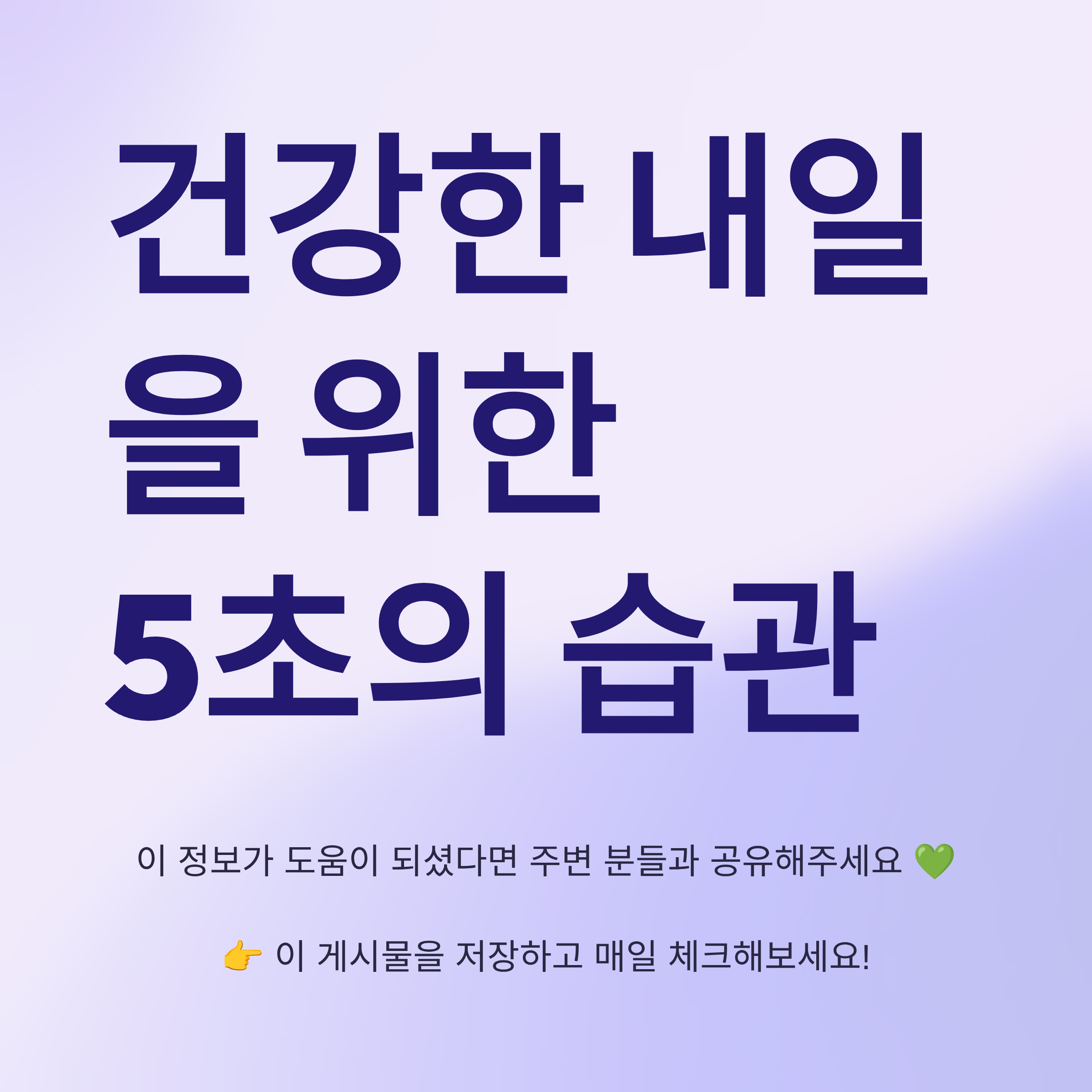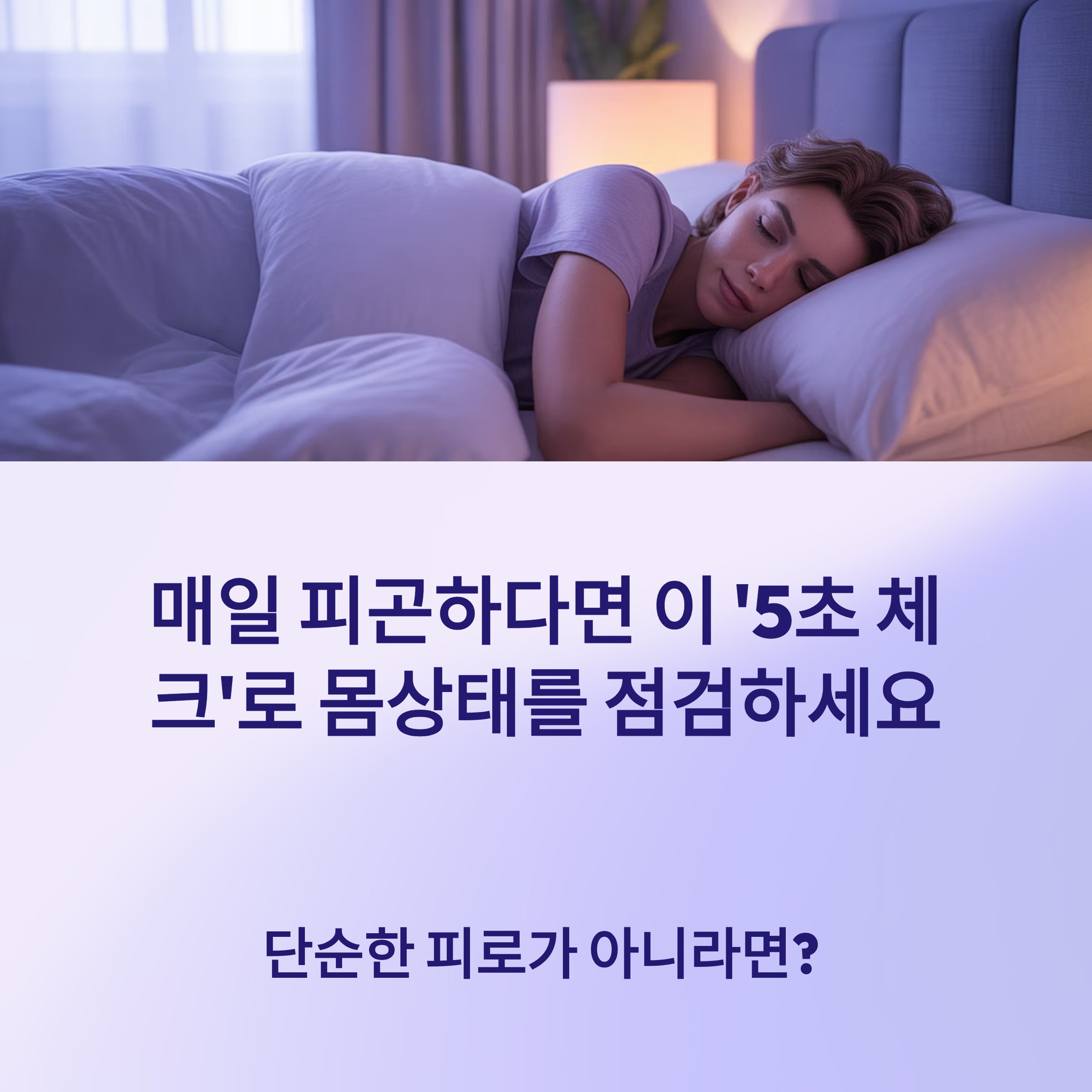 매일 아침 눈을 떠도 개운하지 않고, 일상이 버겁게 느껴지신다면 단순한 피로가 아닐 수 있습니다. 생활습관, 수면의 질, 몸의 신호를 간단히 체크해보는 것만으로도 현재 건강 상태를 가늠할 수 있습니다. 5초면 가능한 짧은 셀프 테스트로 나의 몸 상태를 점검하고, 필요한 생활 변화를 시작해보세요.