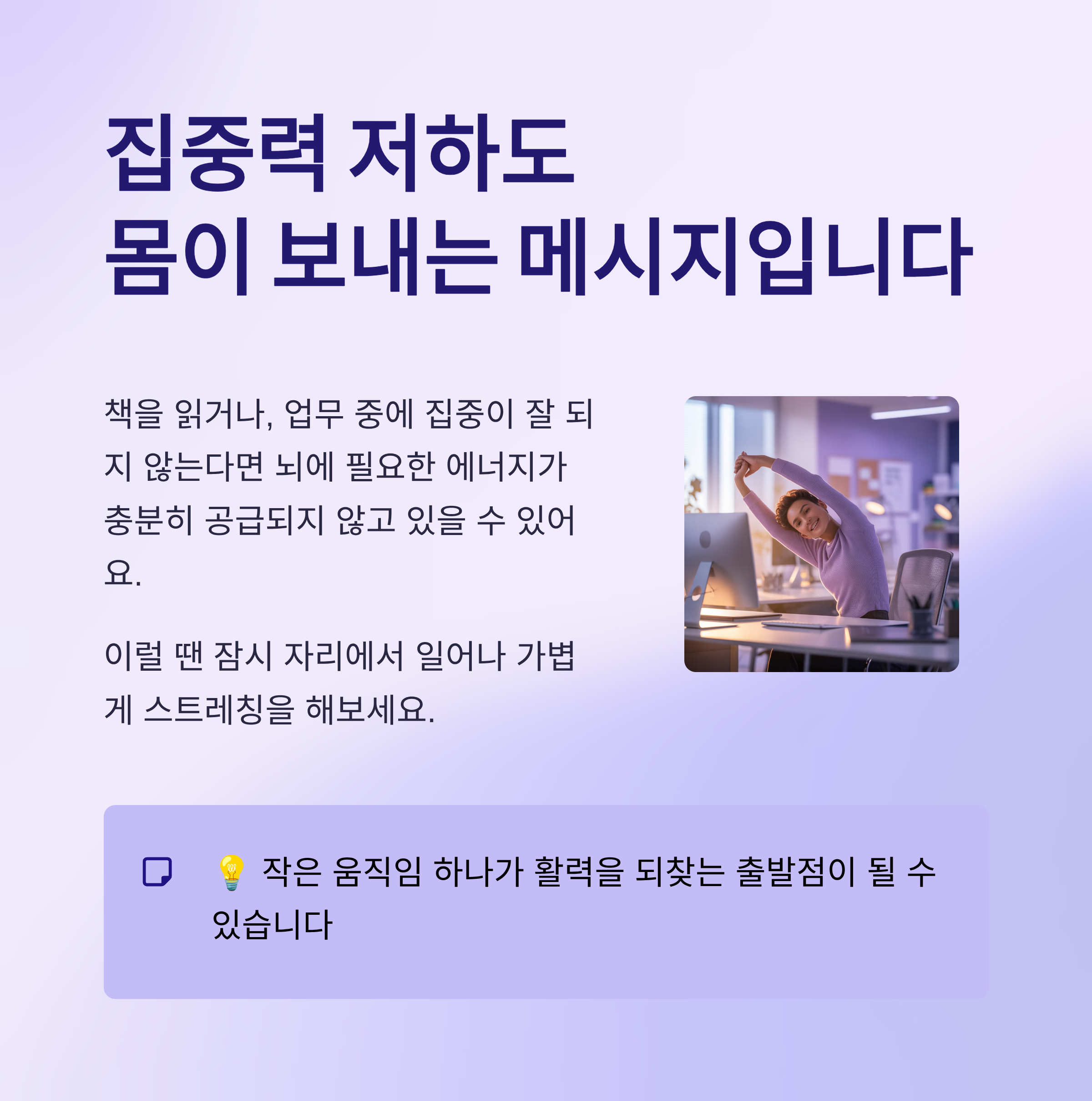 기운 없음, 집중 안 됨, 근육통 등 미세한 신호들을 놓치지 않는 게 중요합니다.