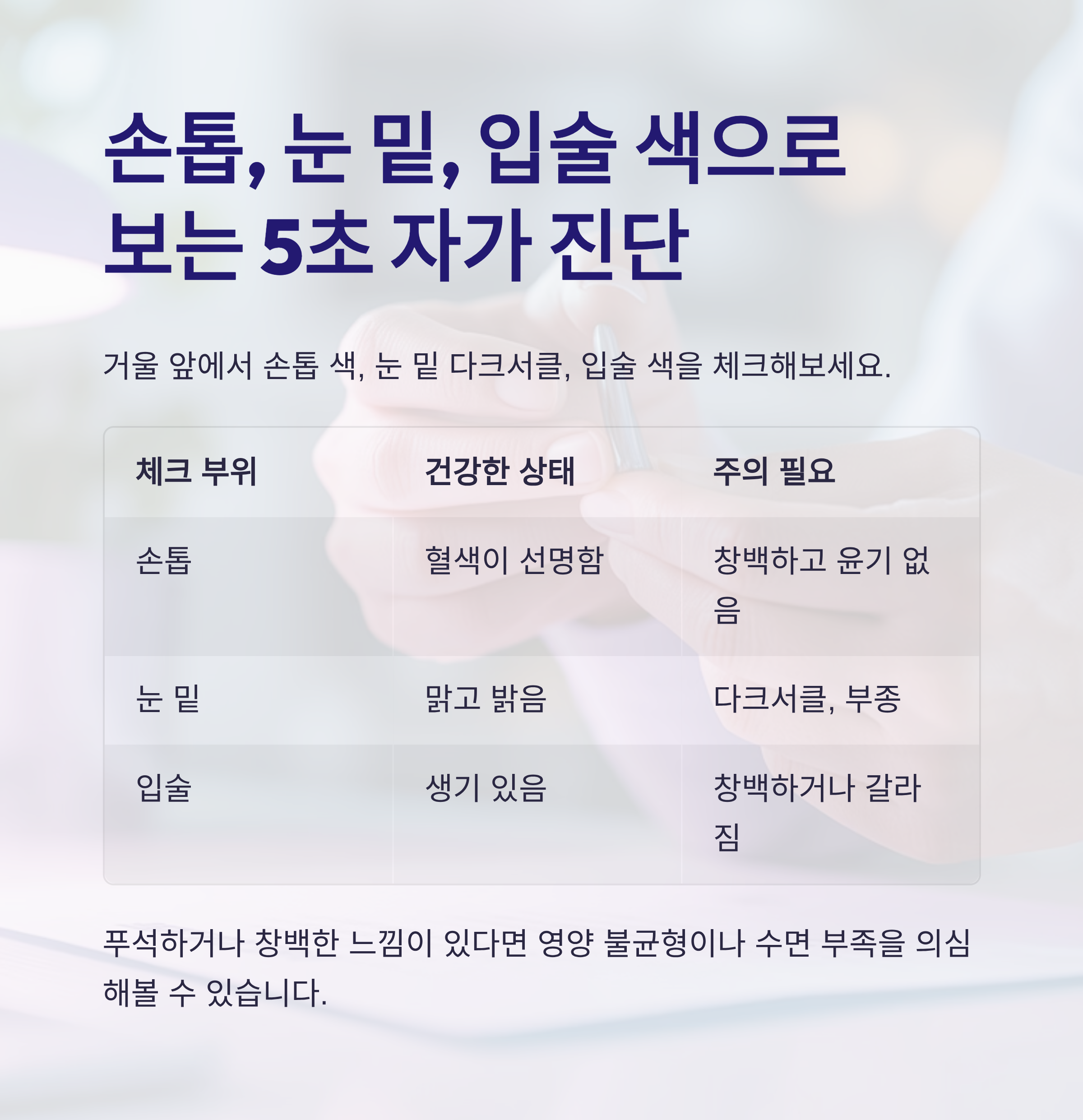손톱, 눈 밑, 입술 색으로 보는 5초 자가 진단