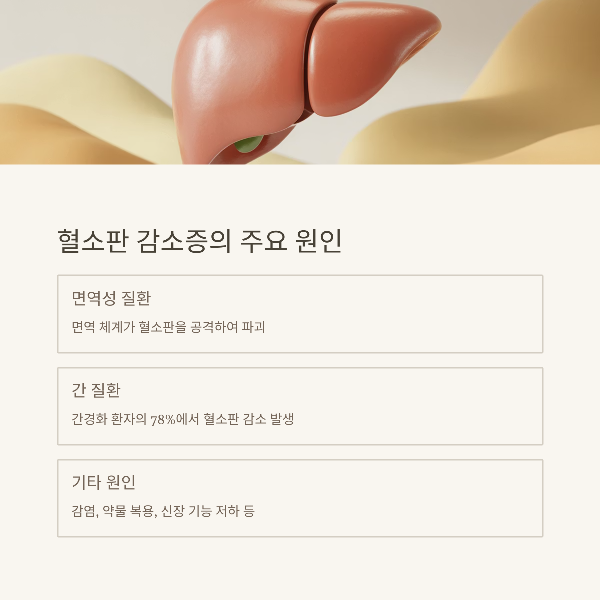 간 질환이 있는 환자들, 특히 간경화 환자의 약 78%에서 혈소판 감소증이 나타난다는 점도 주목할 만합니다.