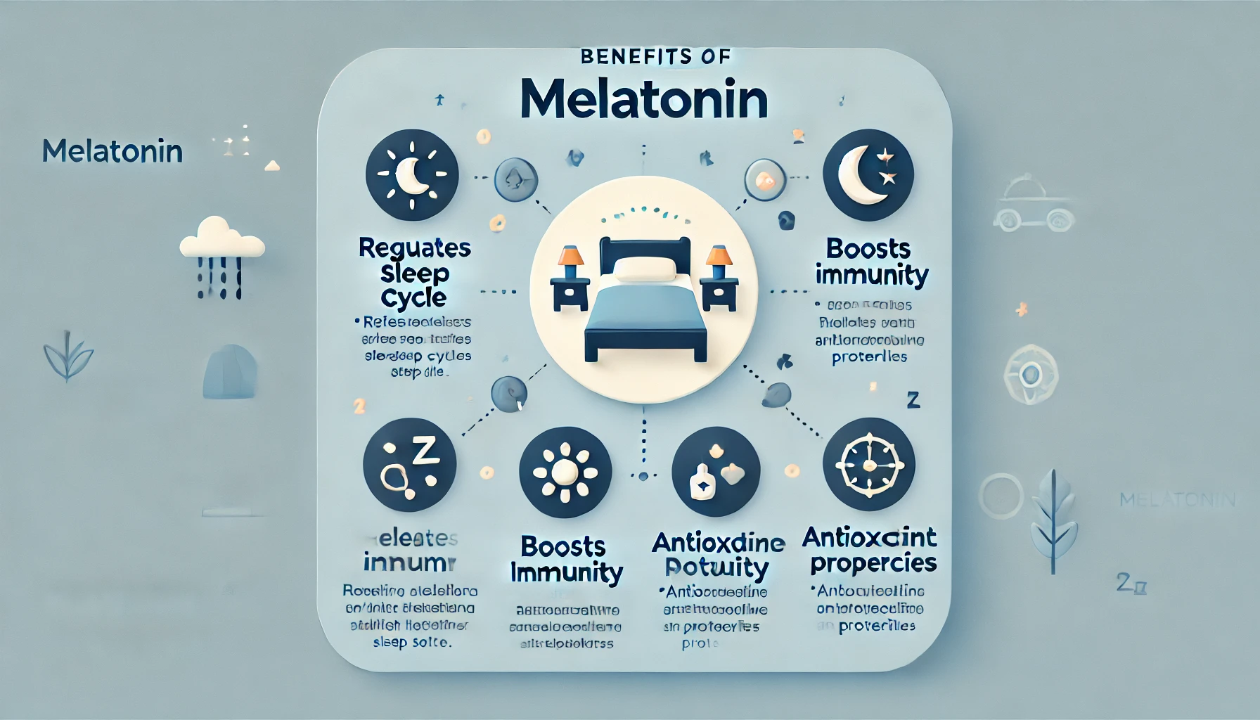 멜라토닌은 단순히 수면을 유도하는 것뿐만 아니라 강력한 항산화 작용을 하며, 세포 손상을 줄여 노화 예방에도 도움이 될 수 있습니다. 또한 면역력을 조절하는 역할을 해 바이러스나 감염으로부터 우리 몸을 보호하는 데 기여합니다.