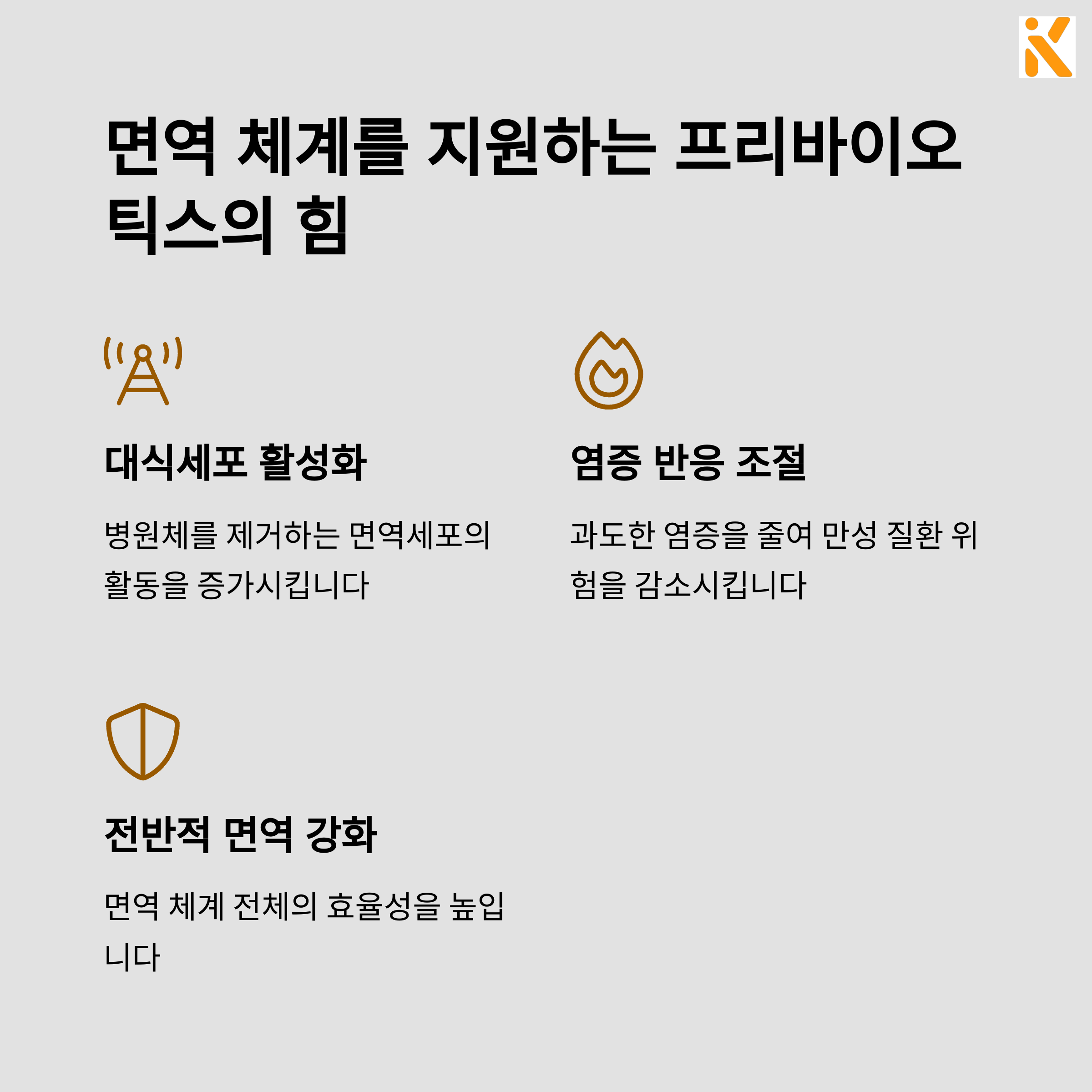 프리바이오틱스와 병행 시 효과 증가 자가면역 완화 및 염증 반응 억제 유익균 중심의 건강한 생태계 조성