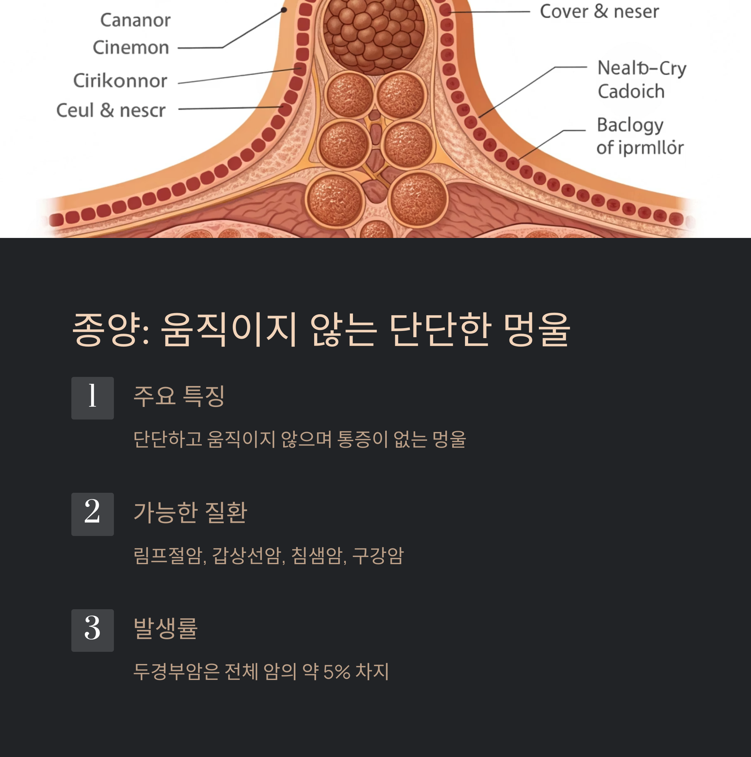 종양 : 단단하고 움직이지 않는 멍울은 즉시 검사