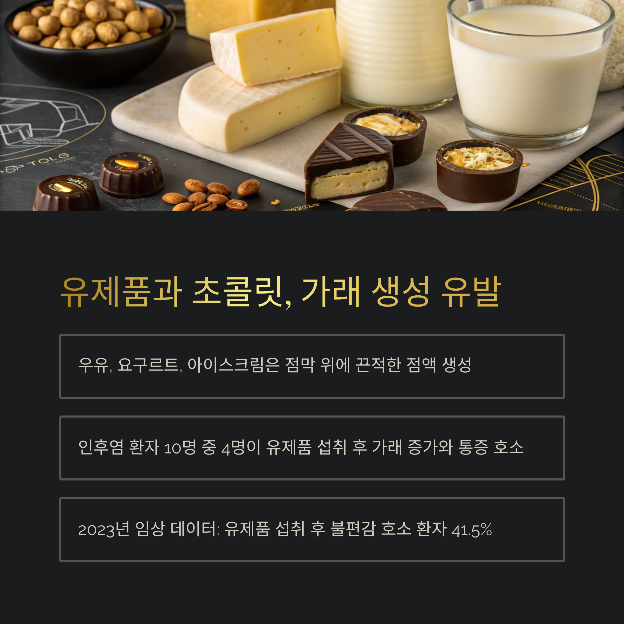 유제품과 초콜릿, 가래 생성과 삼킴 장애 유발