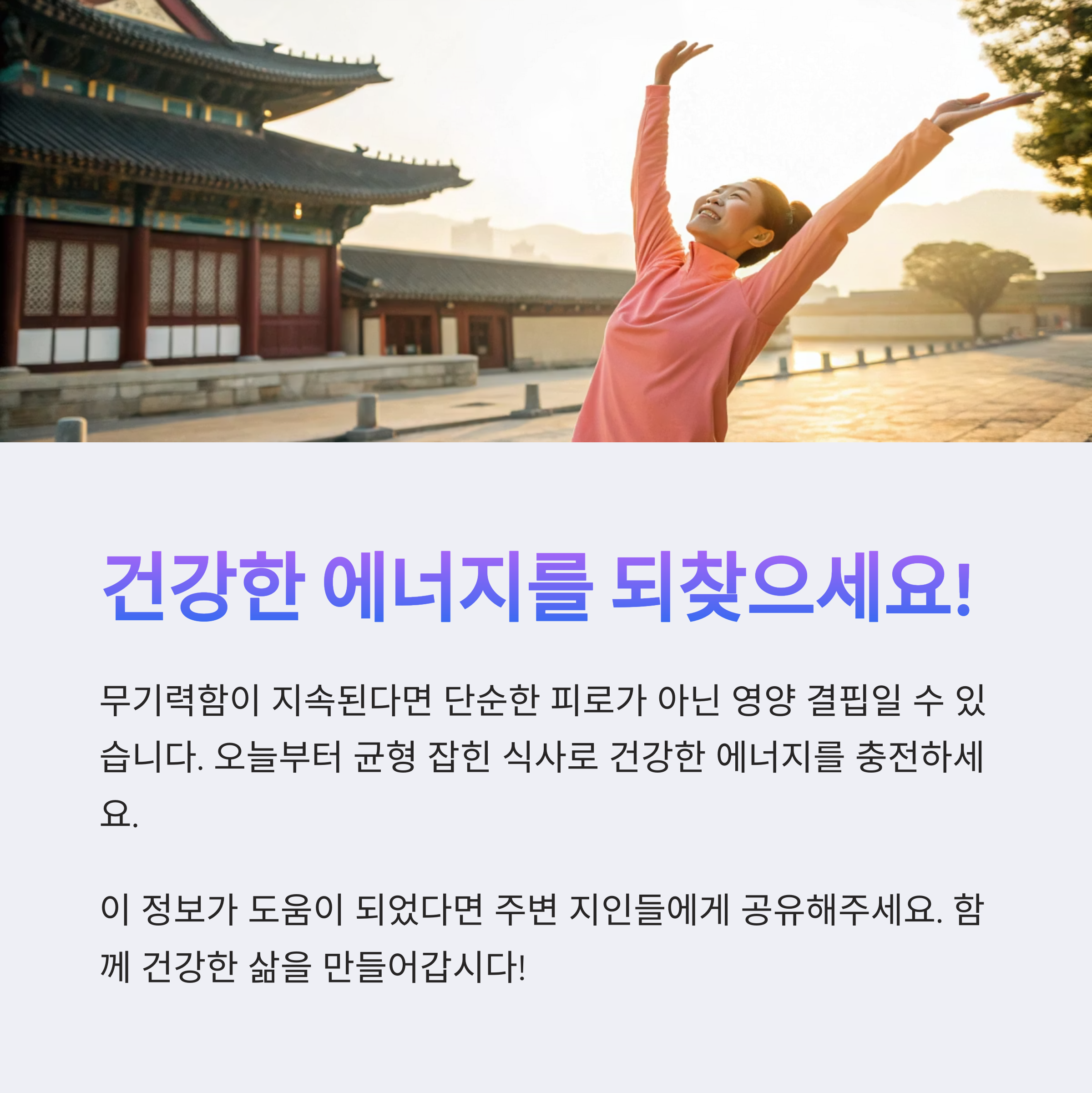 균형 잡힌 식사, 정기적인 건강 체크, 필요 시 보충제 섭취로 활력을 되찾으세요.