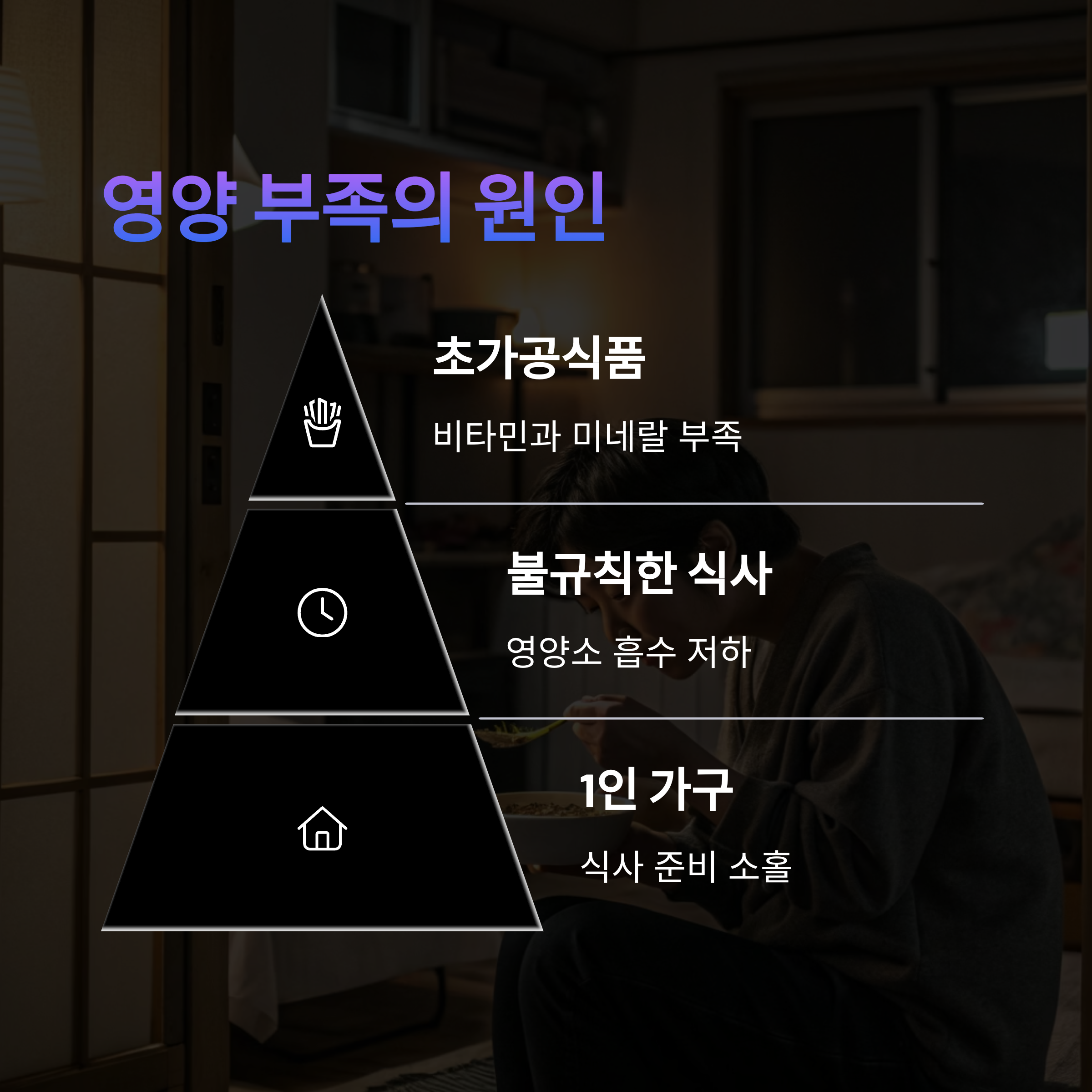 특히 혼자 사는 1인 가구, 다이어트 중인 여성, 노년층은 영양 결핍에 취약합니다.
