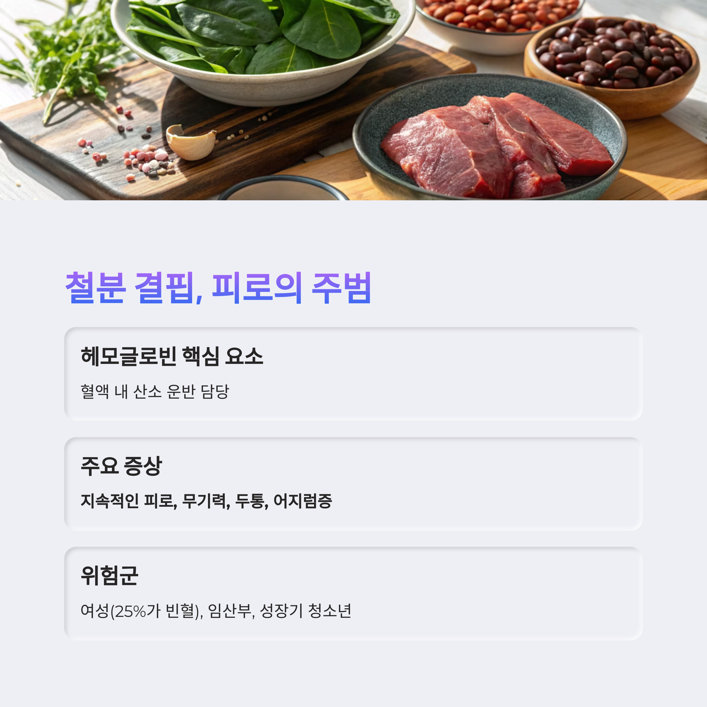 특히 생리, 임신, 성장기에는 철분 수요가 급증하므로 의도적인 보충이 필요합니다.
