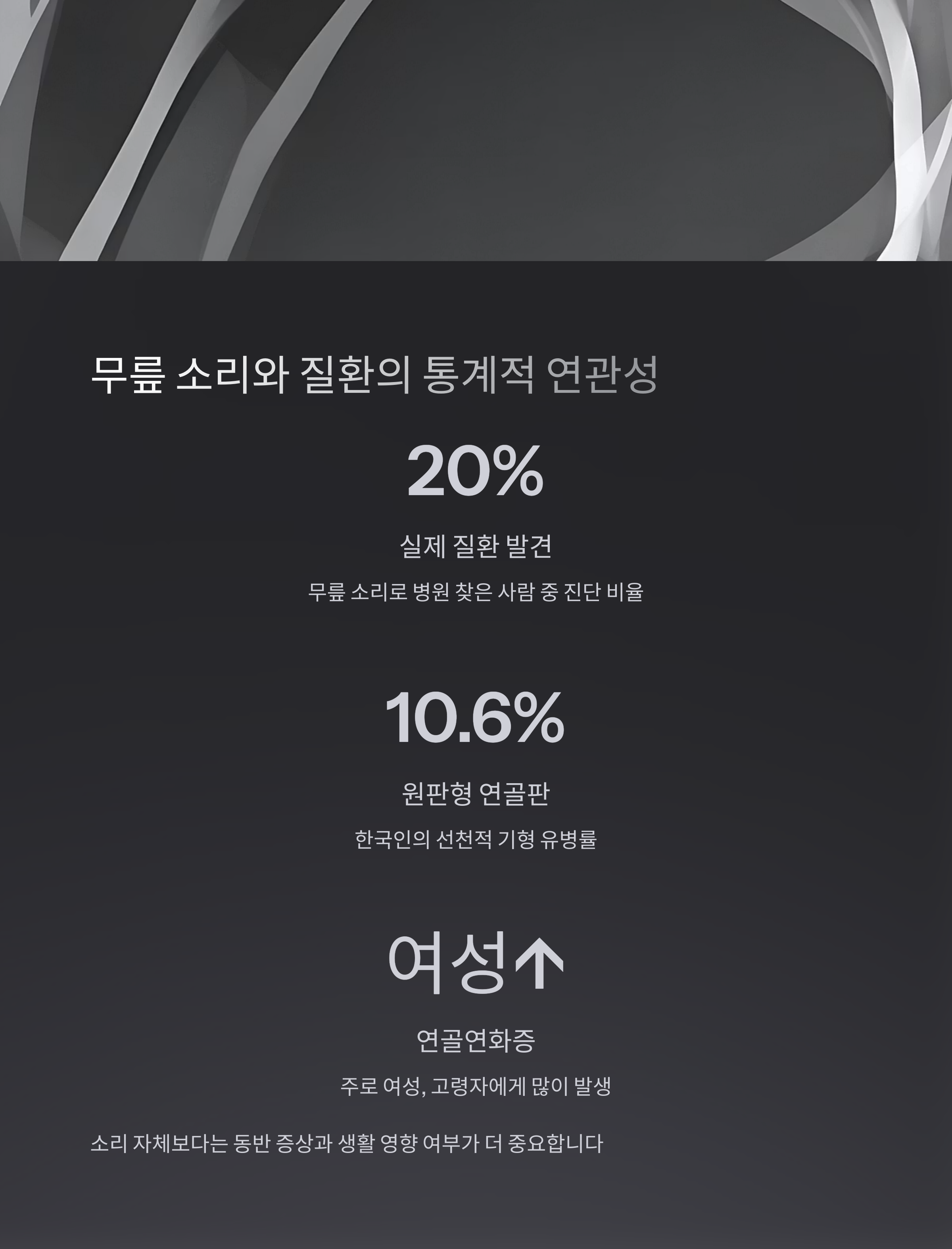 무릎 소리만으로 질병을 판단할 수는 없습니다.