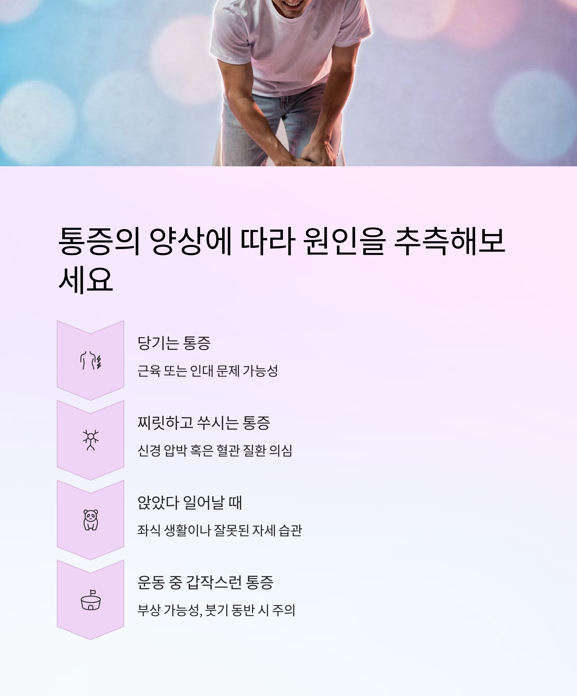 통증의 양상에 따라 원인을 추측해보세요