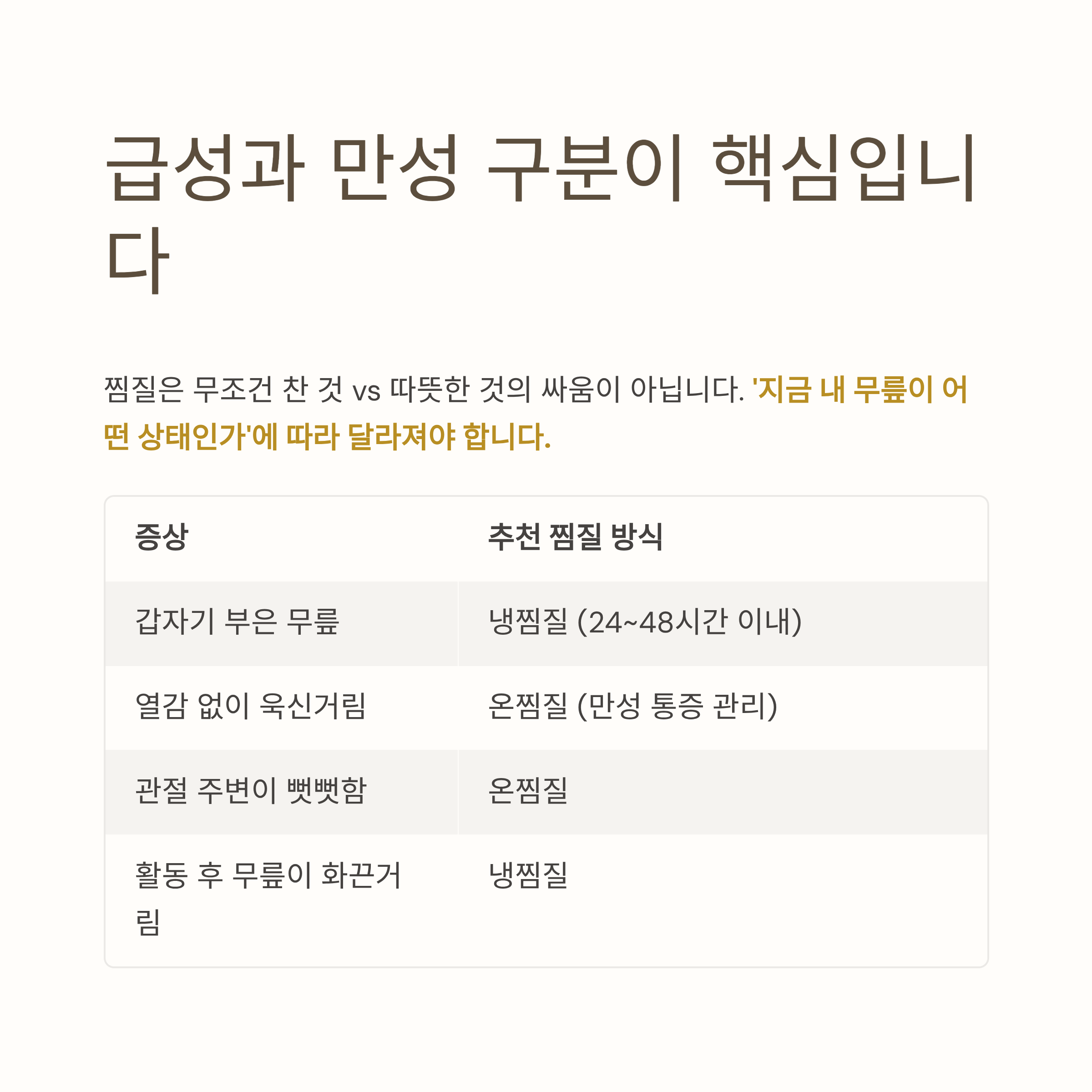 급성과 만성 구분이 찜질의 방향을 결정합니다