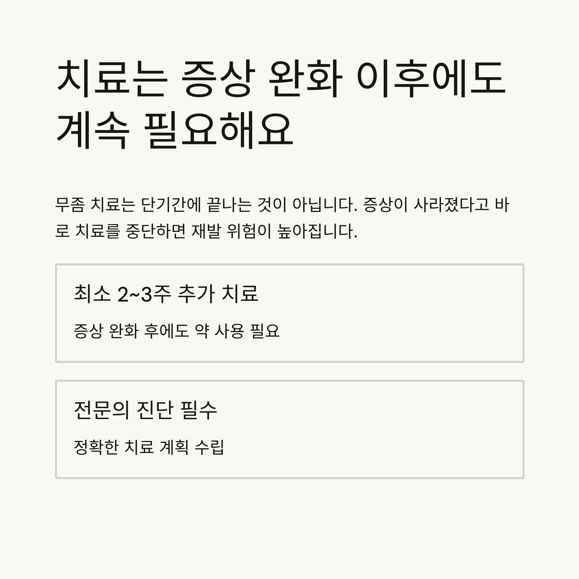 증상이 사라졌다고 바로 치료를 중단하면 재발 위험이 높아집니다.