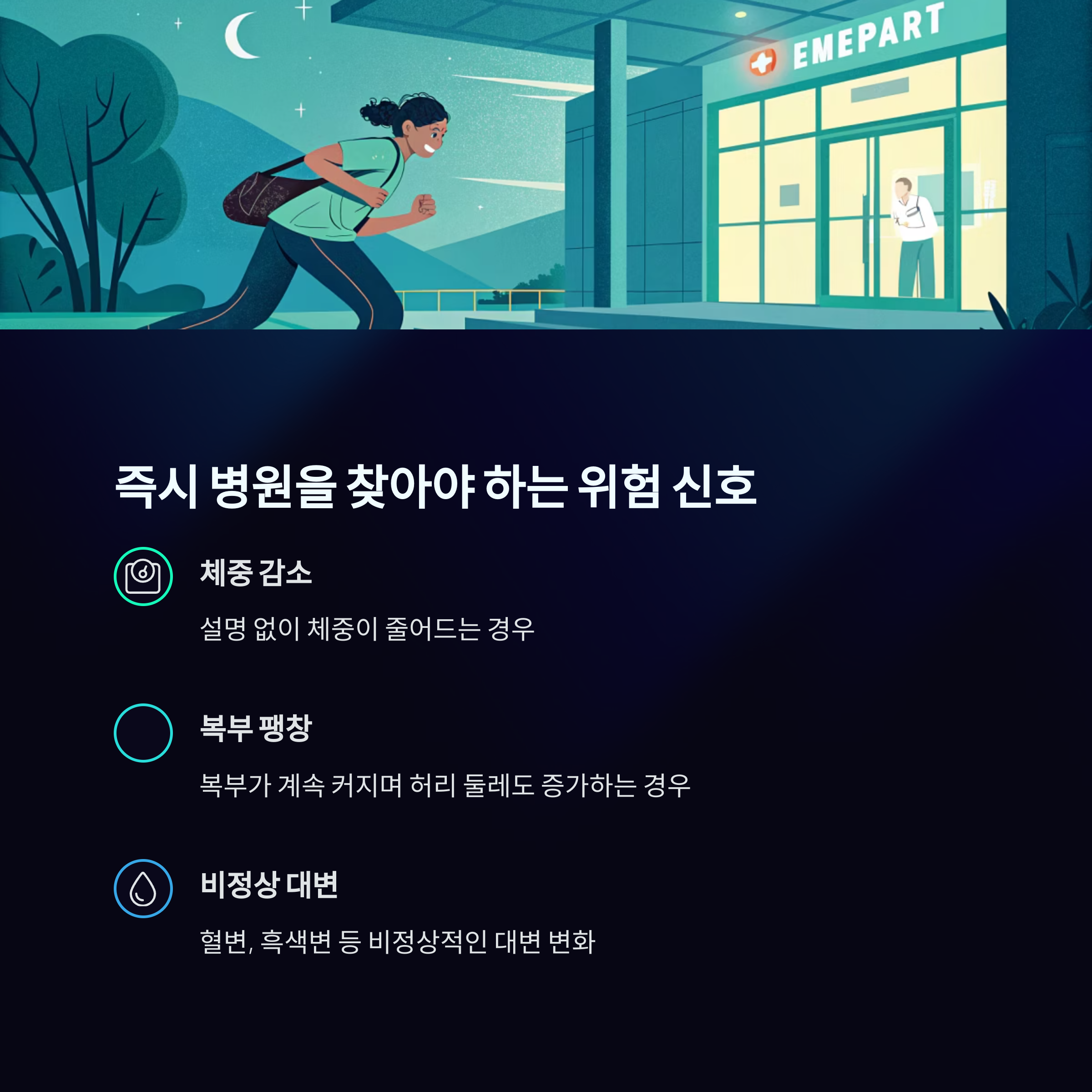 중요: 증상이 반복되거나 심해질 경우 반드시 내시경, CT, 혈액검사 등을 통해 진단을 받아야 합니다.