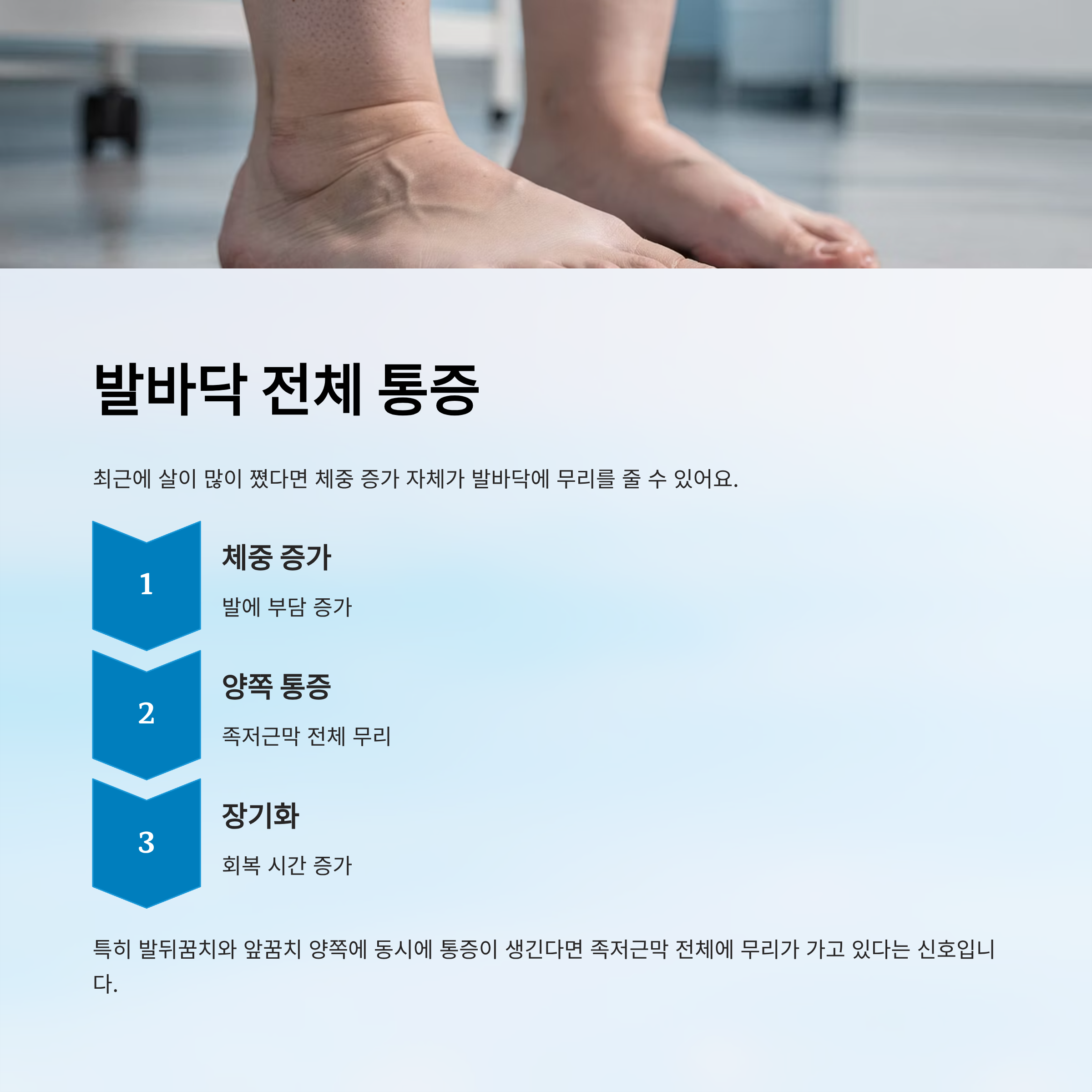 체중 증가 이후 발바닥 전체 통증? 체중 부담 가능성도