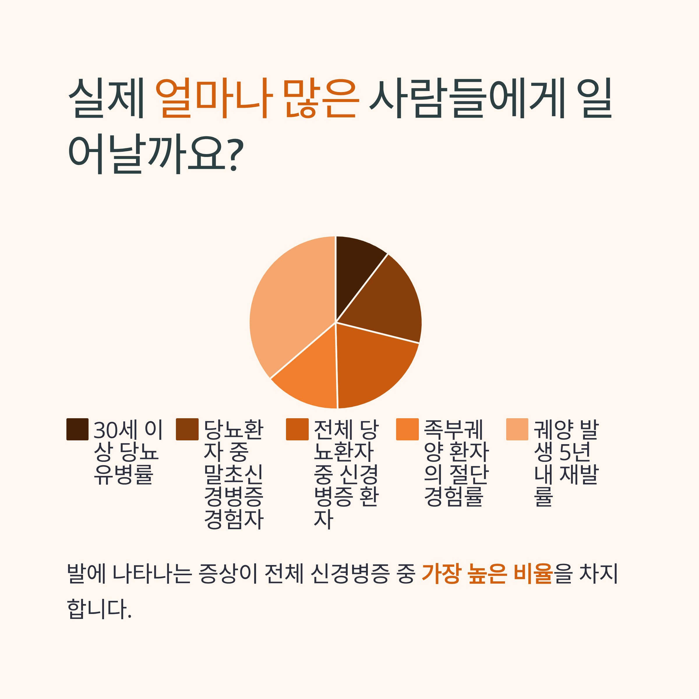 특히 발에 나타나는 증상이 전체 신경병증 중 가장 높은 비율을 차지한다는 점은 매우 주목할 만합니다.