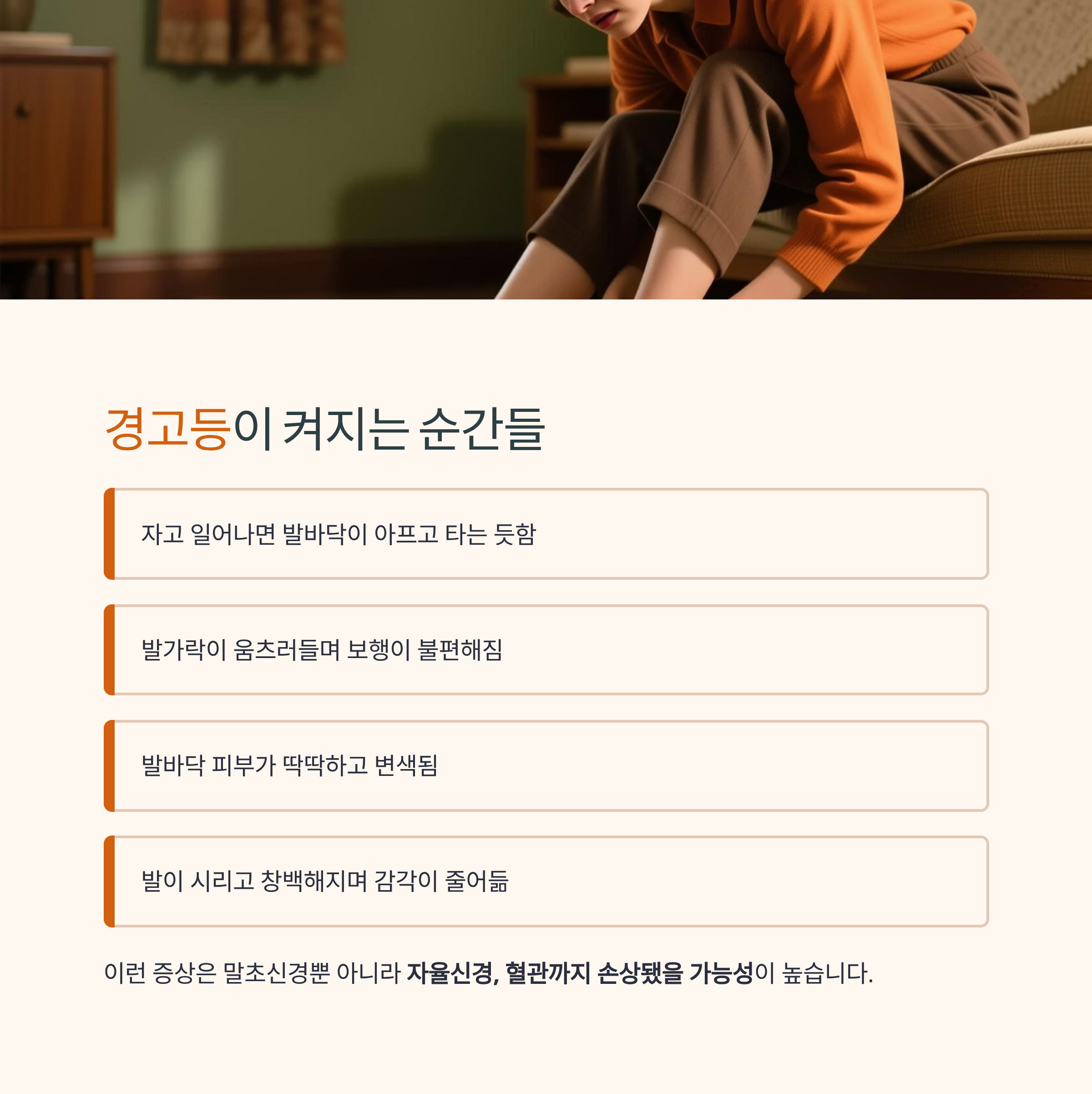 이런 증상은 말초신경뿐 아니라 자율신경, 혈관까지 손상됐을 가능성이 높습니다.