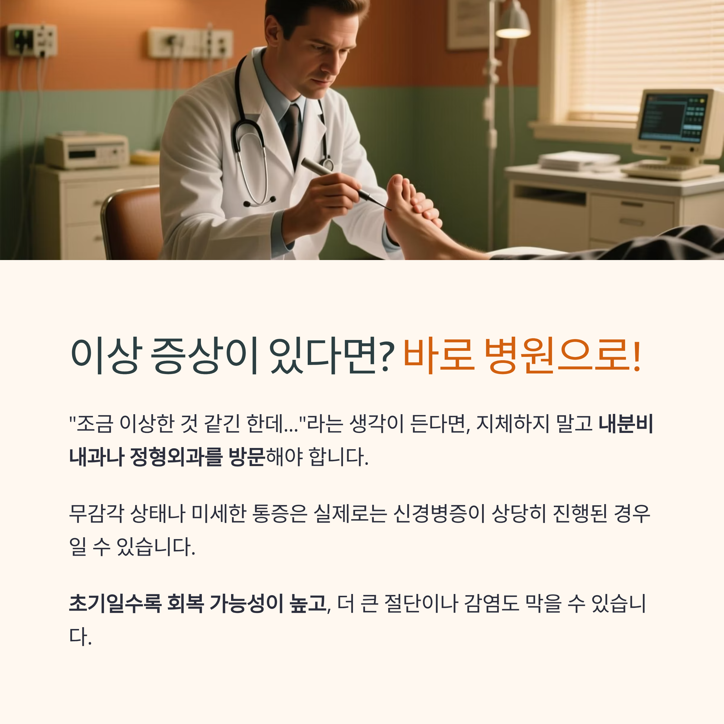 무감각 상태나 미세한 통증은 실제로는 신경병증이 상당히 진행된 경우일 수 있습니다.