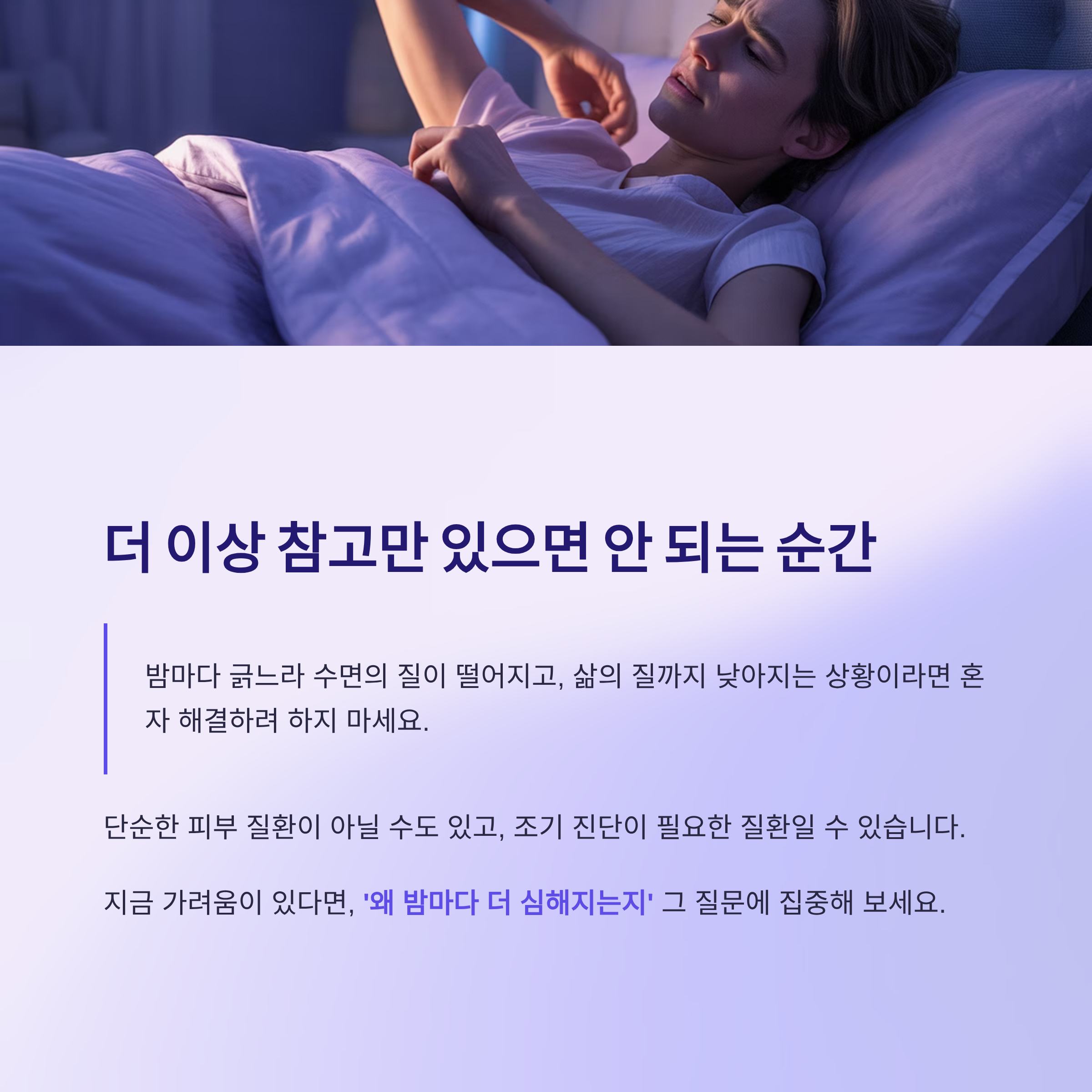 지금 가려움이 있다면, '왜 밤마다 더 심해지는지' 그 질문에 집중해 보세요.