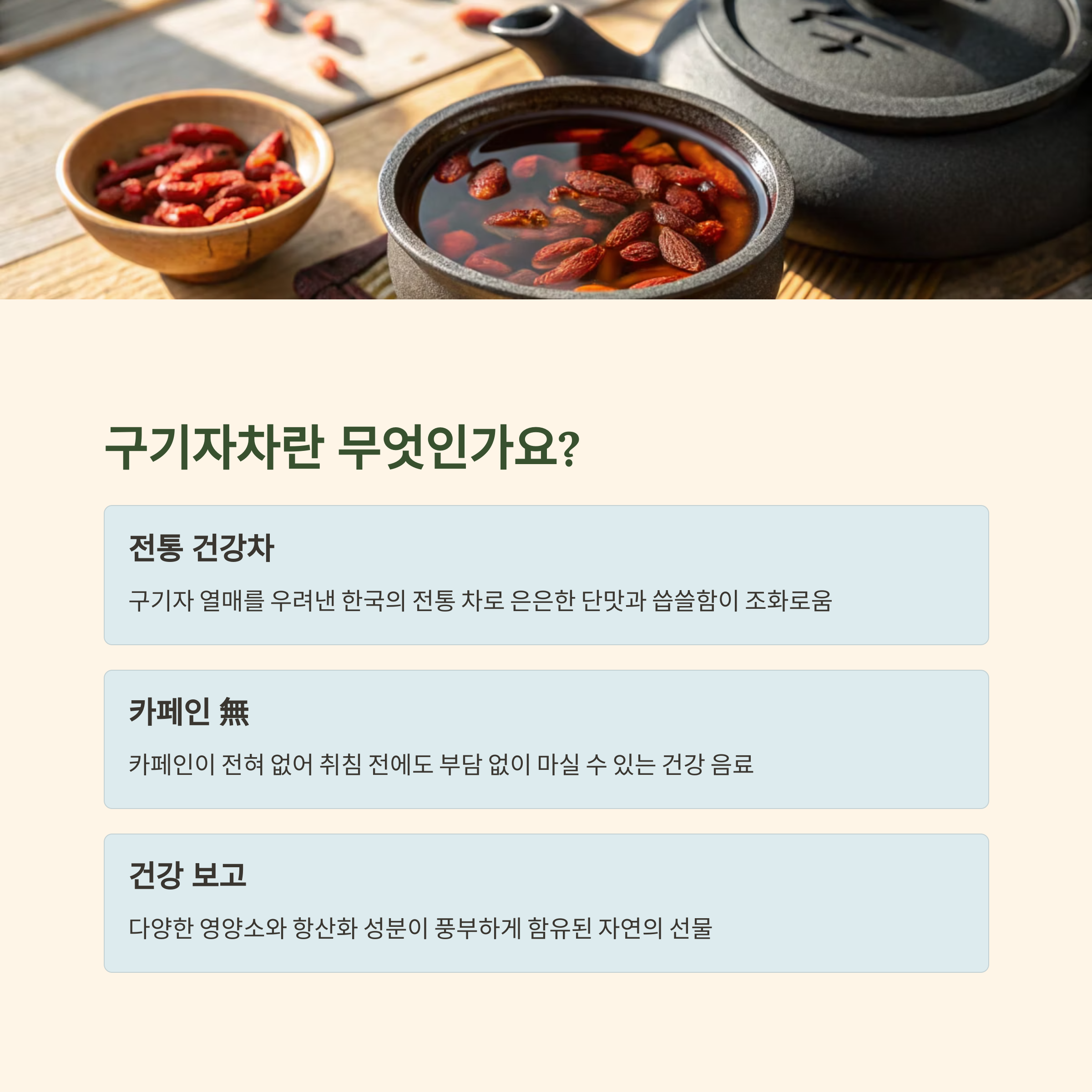| 구기자차 효능 | 항산화, 면역력, 간 보호 등 다방면 건강 효과 |