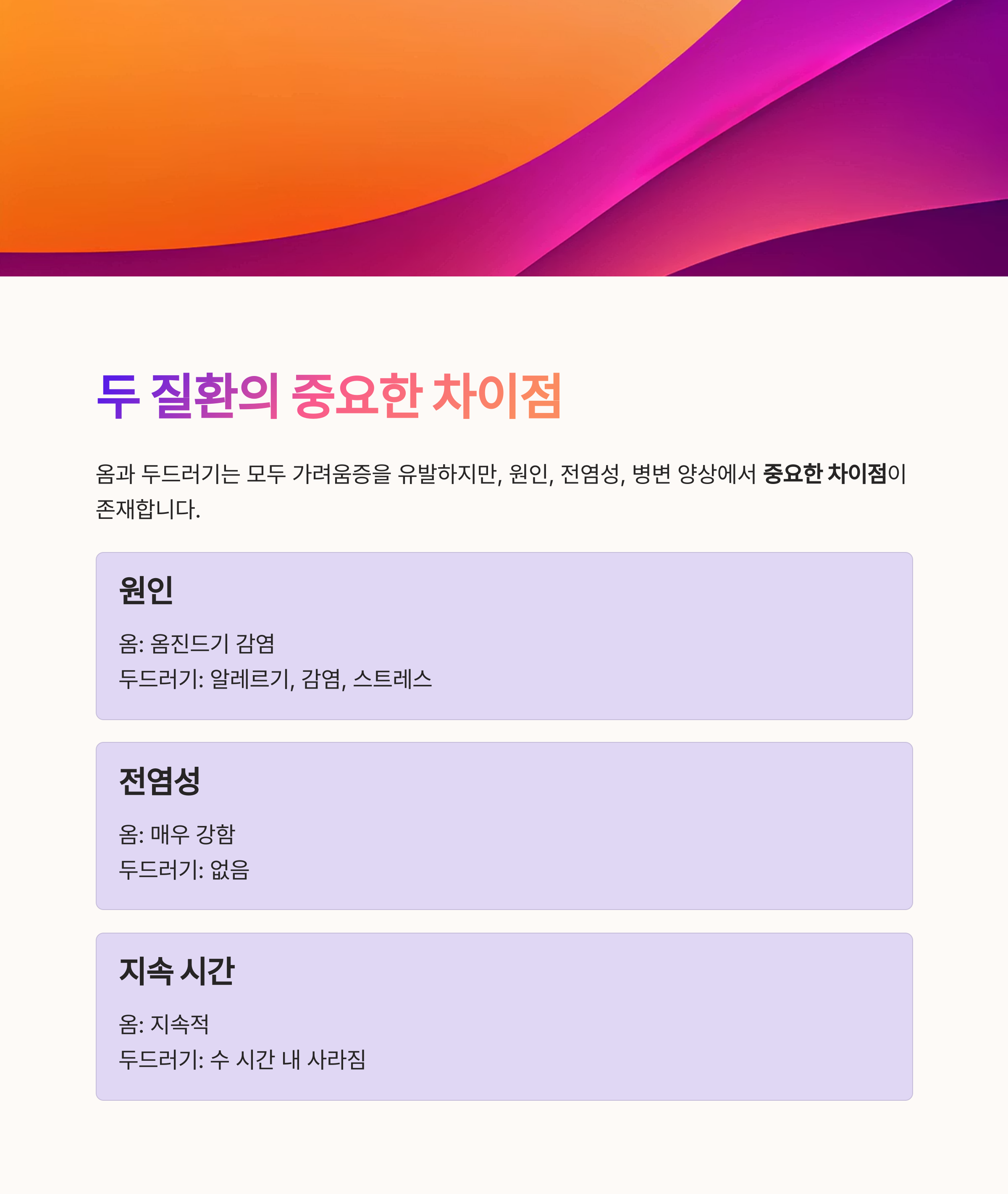 옴과 두드러기의 가장 큰 차이는