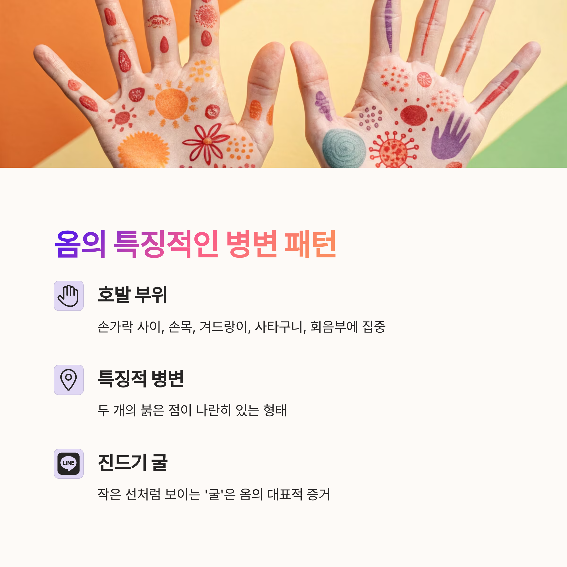 특정 부위에 집중되는 병변, 옴의 패턴