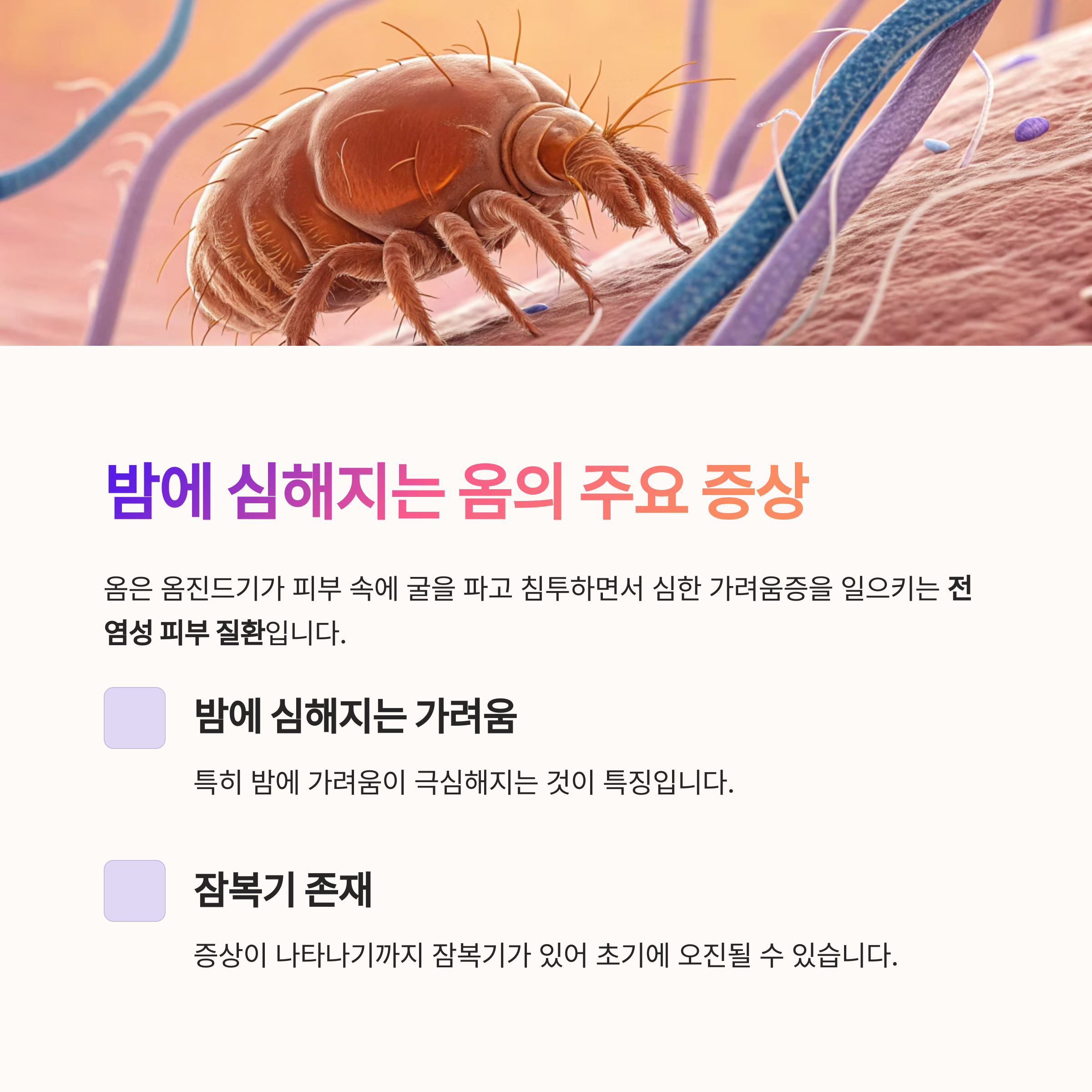 "가려움이 밤에 더 심해요. 옴일까요?"