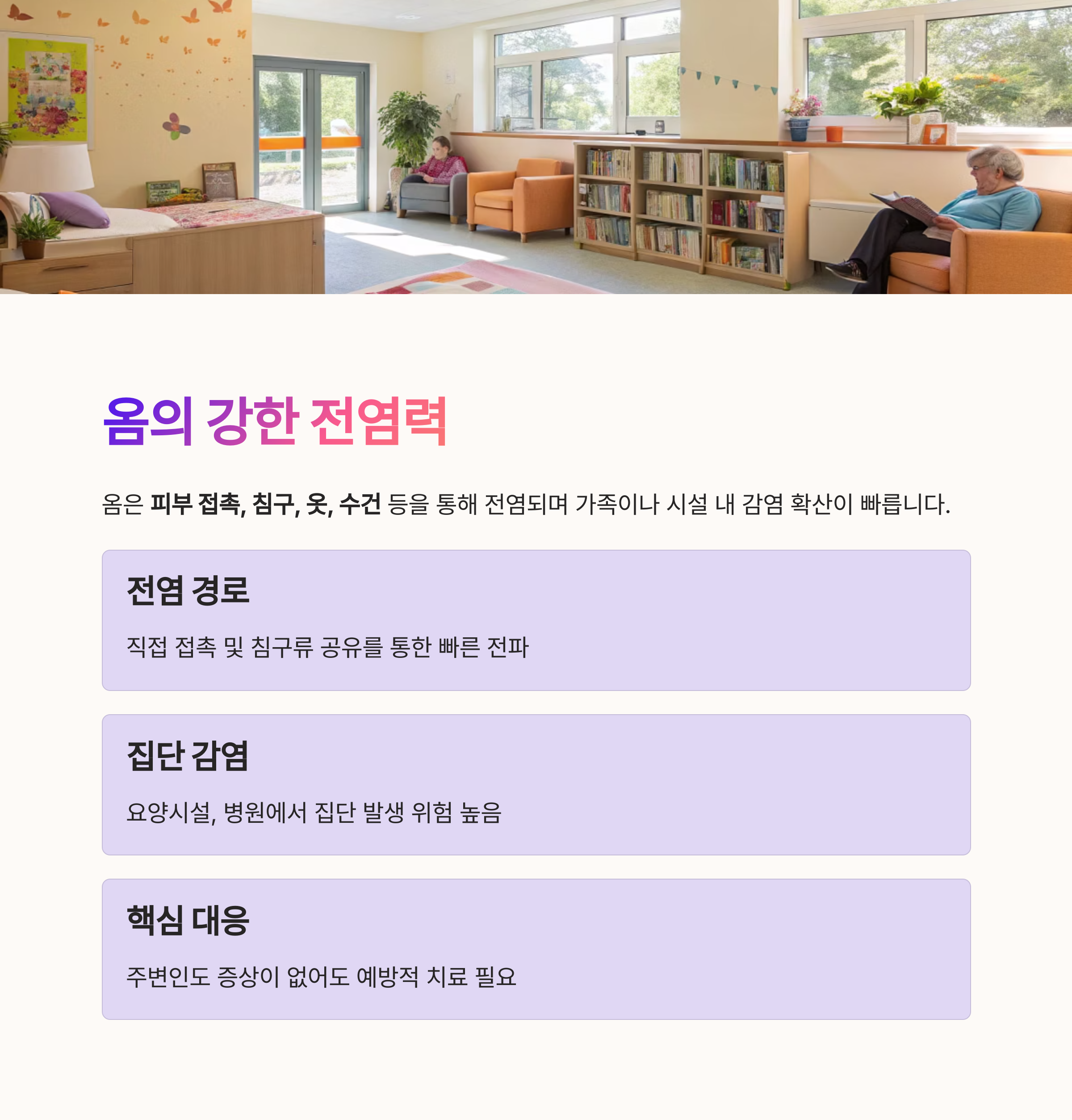 옴은 단순히 치료제만 바르는 것으로 끝나지 않으며