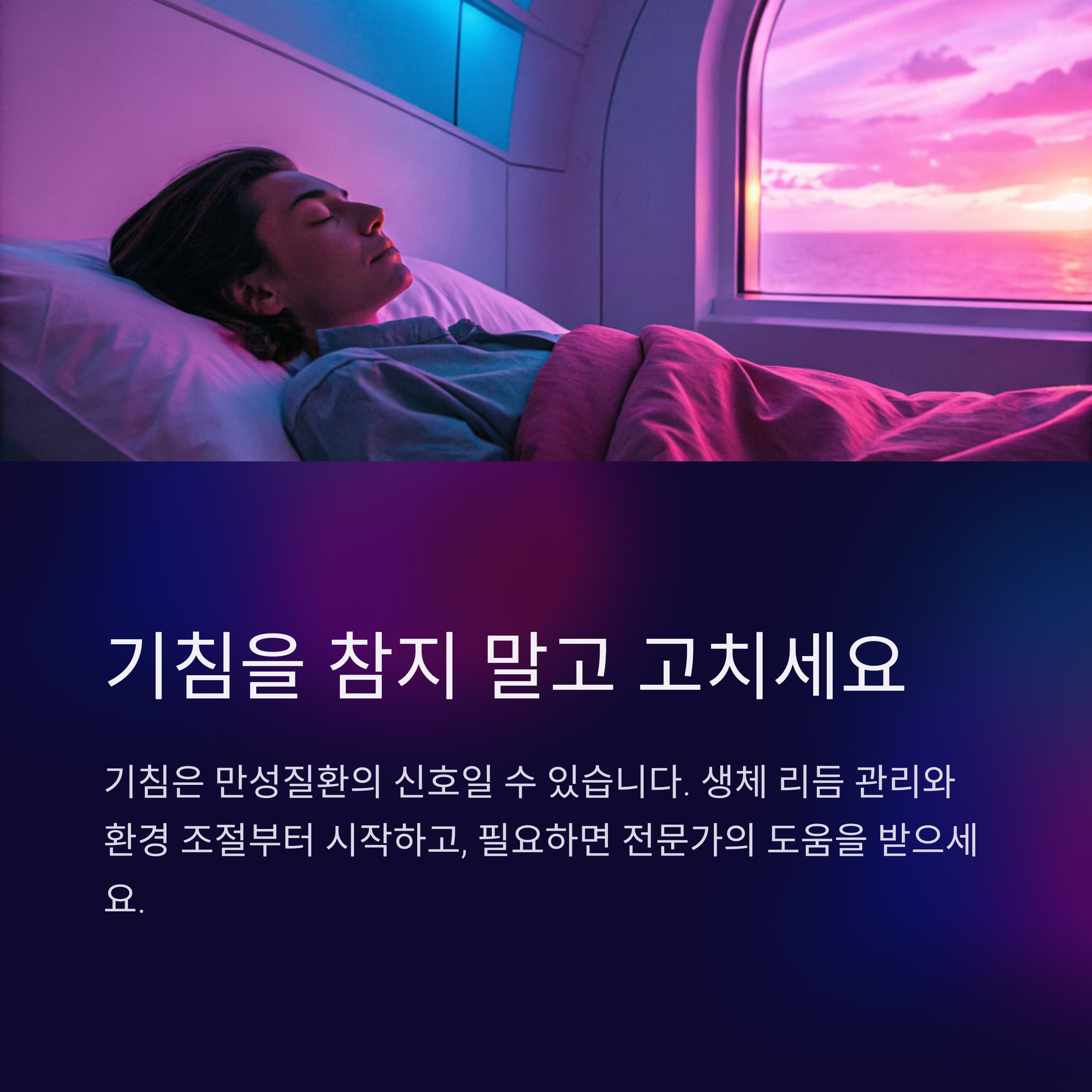 밤낮의 리듬을 회복하는 것만으로도 기침 증상이 뚜렷이 개선될 수 있습니다.