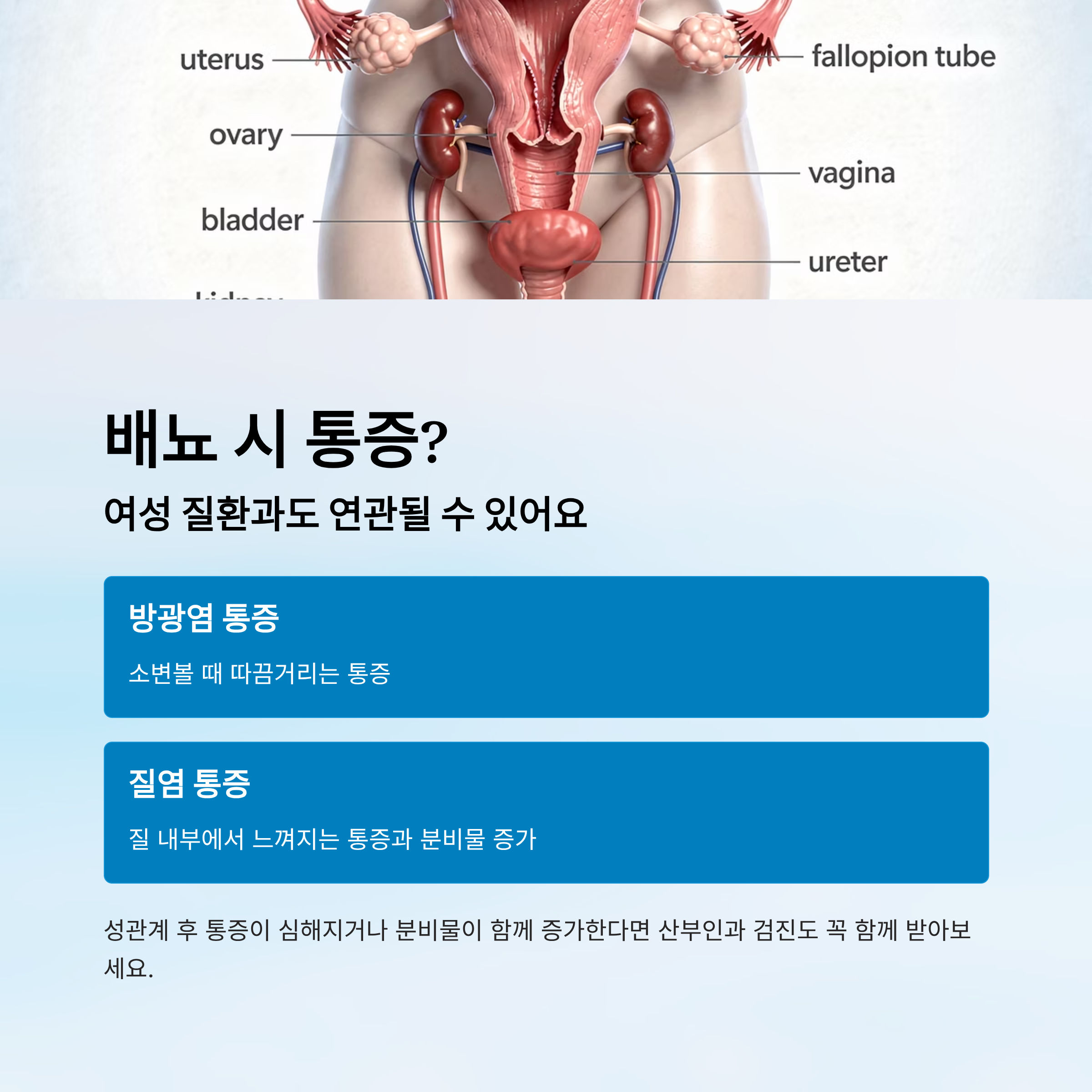 문제를 더 키울 수 있어요. 반드시 산부인과나 비뇨기과에서 진단받아보세요.