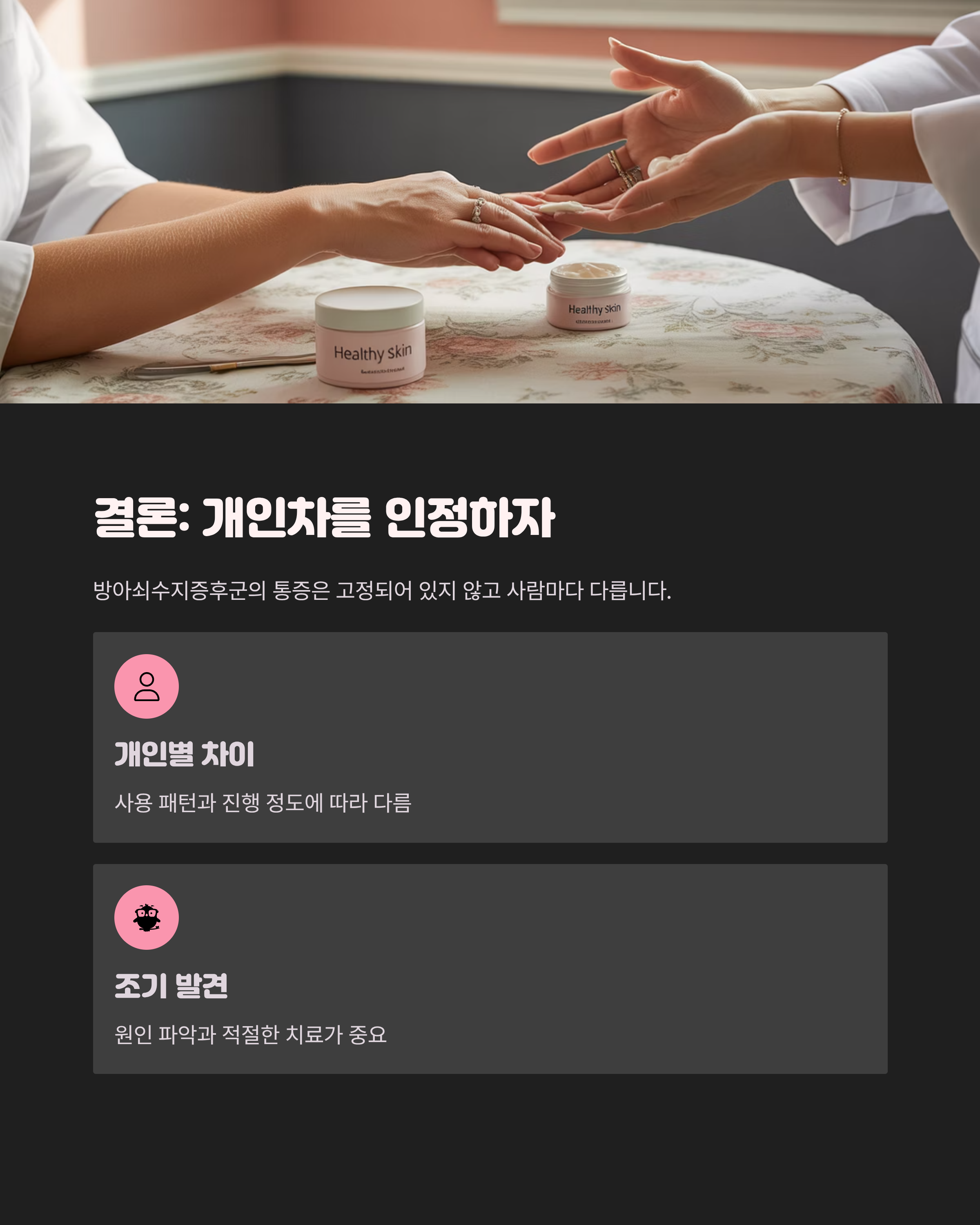 손가락 사용 패턴, 질환 진행 정도, 결절 형성 유무, 직업적 습관 등에 따라 위치와 강도가 다르게 나타나며, 때로는 이동하기도 합니다. 2015년 대비 2023년 환자 수가 약 1.5배 이상 증가한 것처럼, 이 질환은 더 이상 남의 일이 아닙니다.