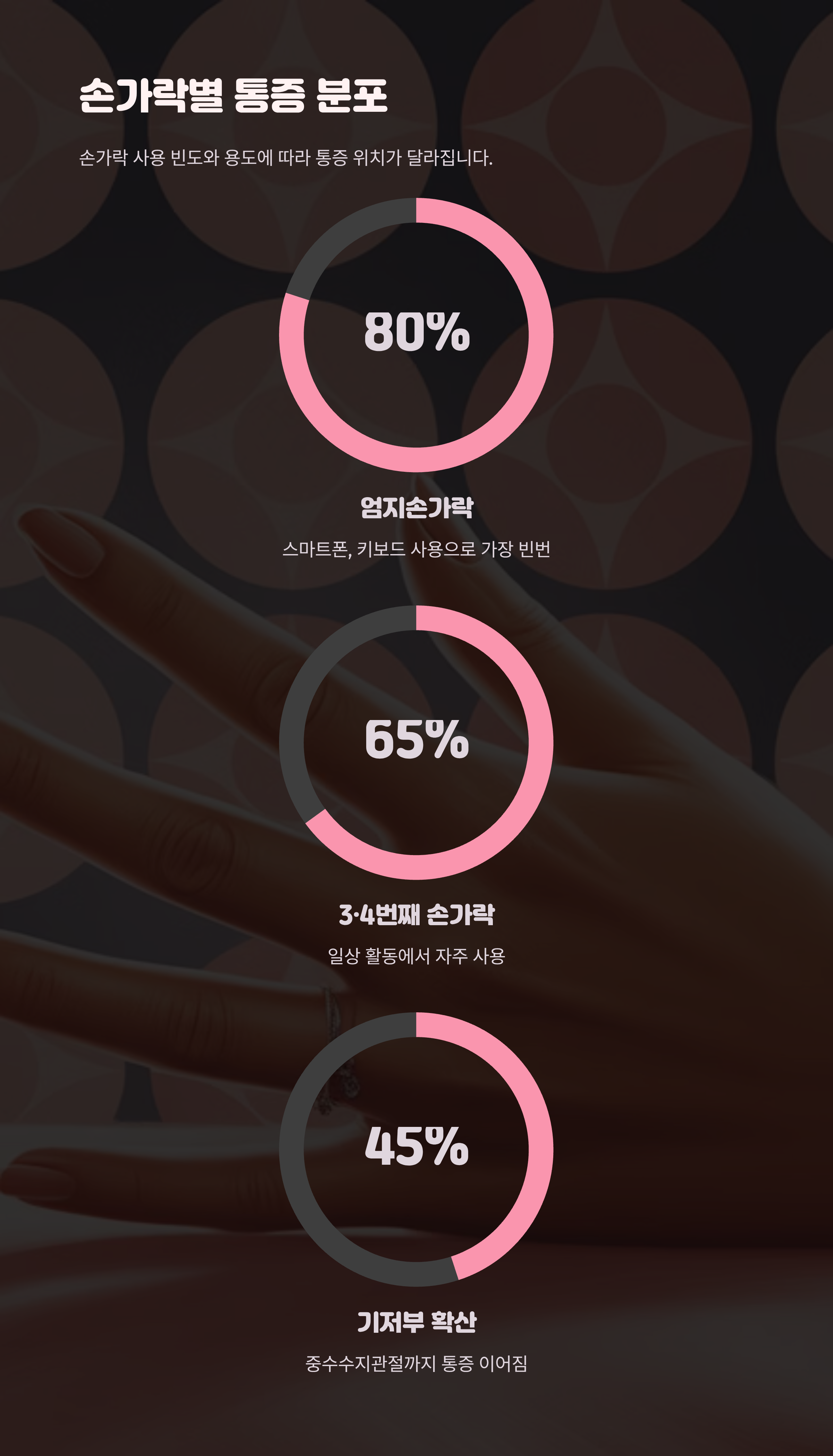 손가락을 어떤 용도로 얼마나 자주 사용하는지에 따라 통증 위치가 달라집니다.