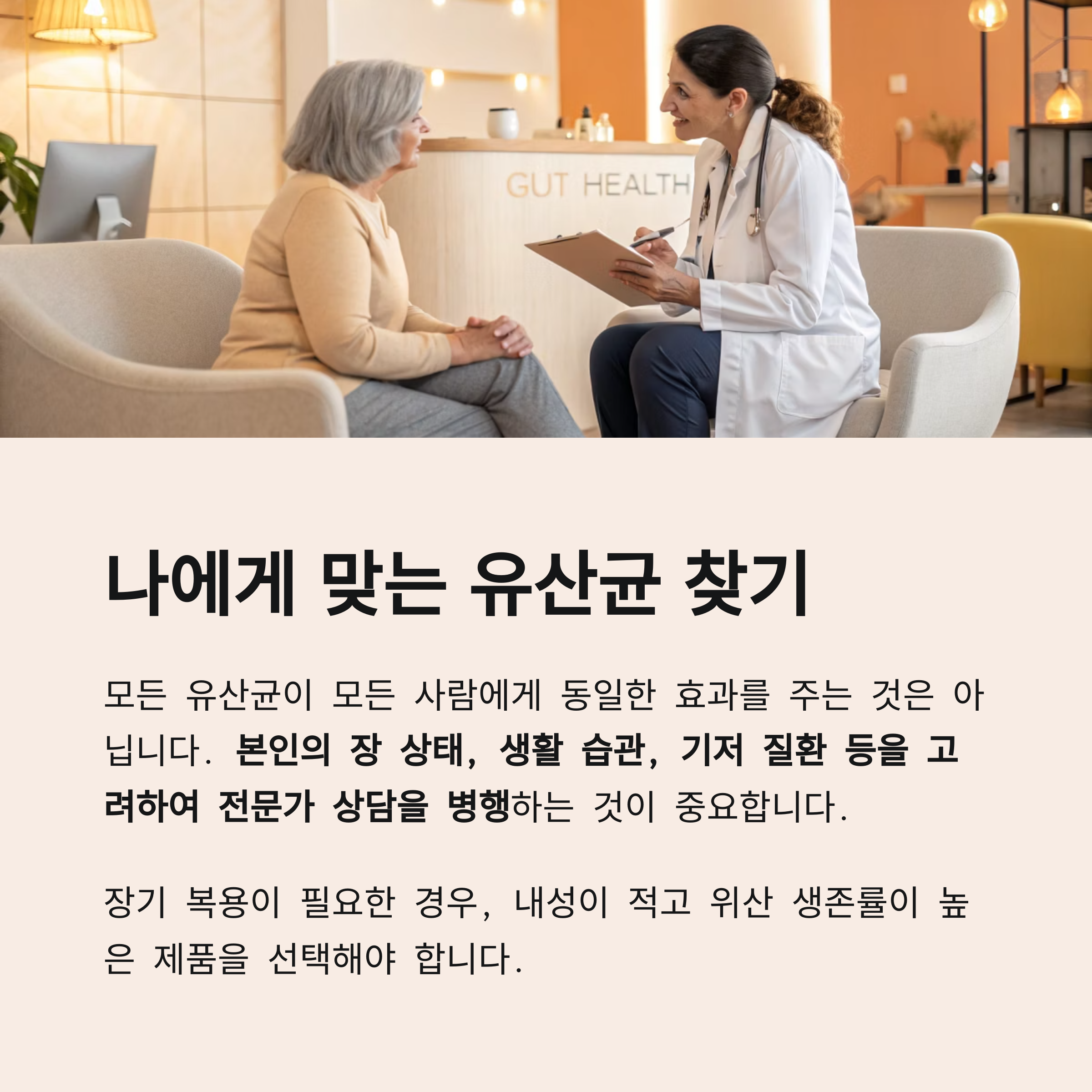 본인의 장 상태, 생활 습관, 기저 질환 등을 고려하여 전문가 상담을 병행하는 것이 중요합니다.