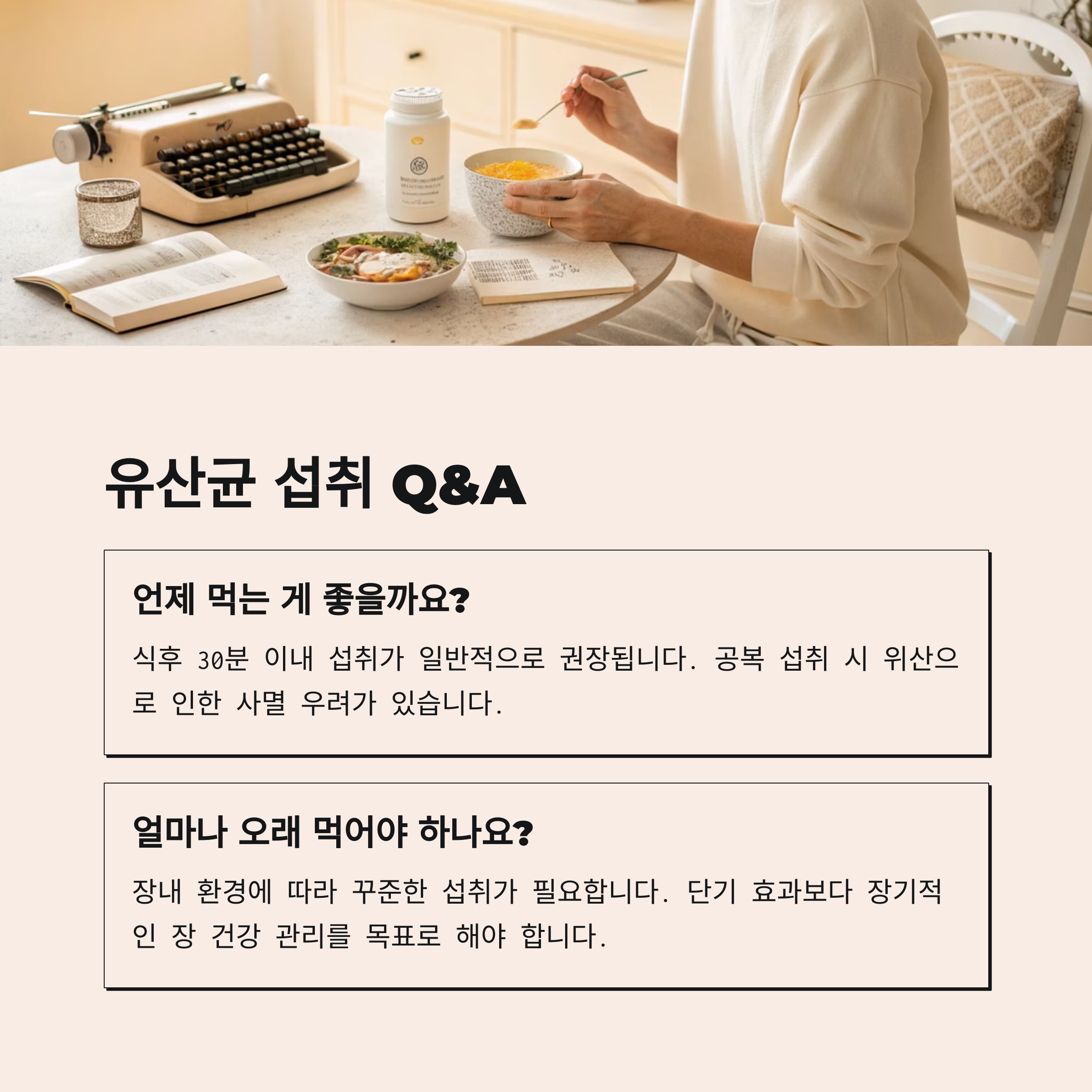 단기 효과보다 장기적인 장 건강 관리를 목표로 해야 합니다.