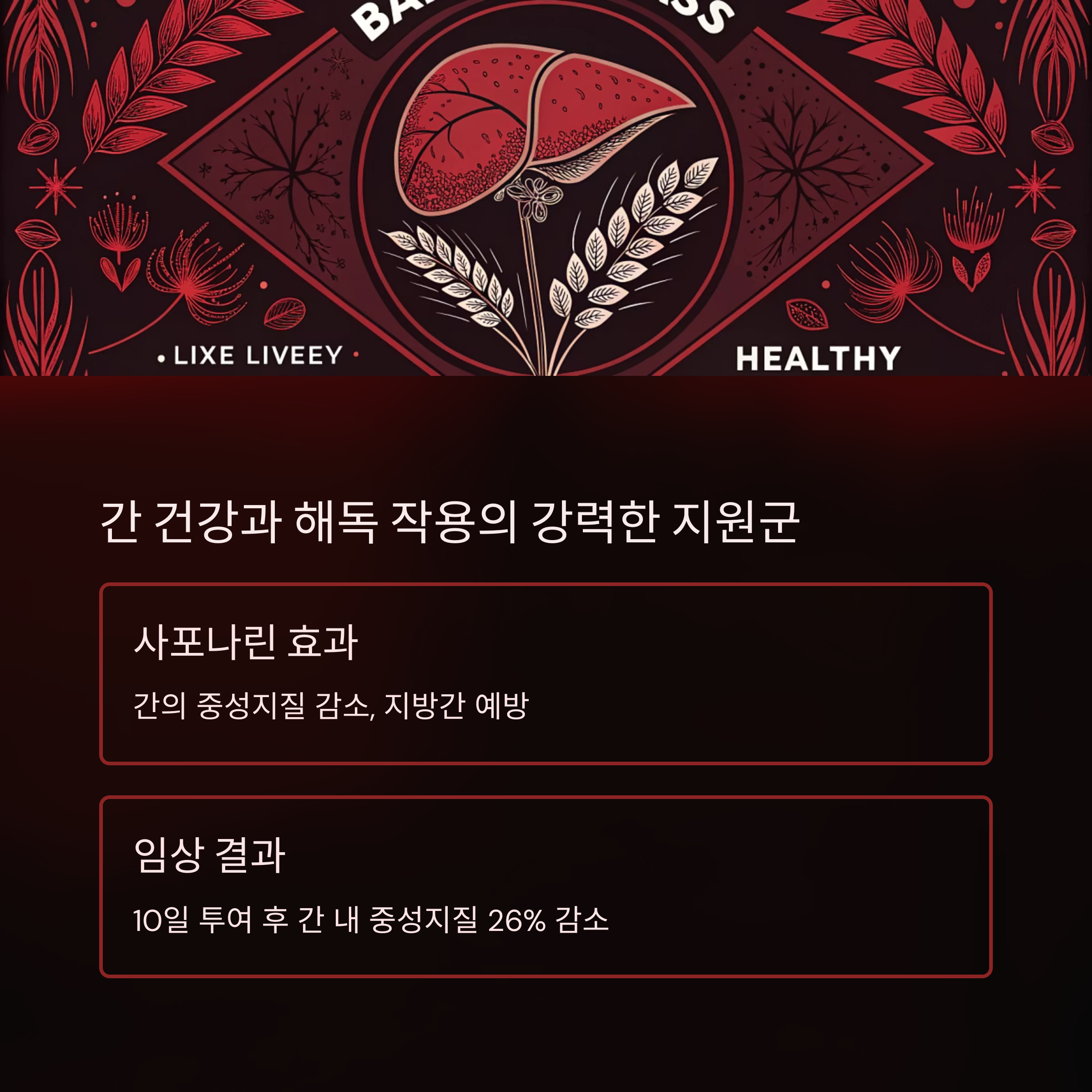 보리새싹 속 사포나린은 간의 중성지질을 낮추고 지방간을 예방합니다.