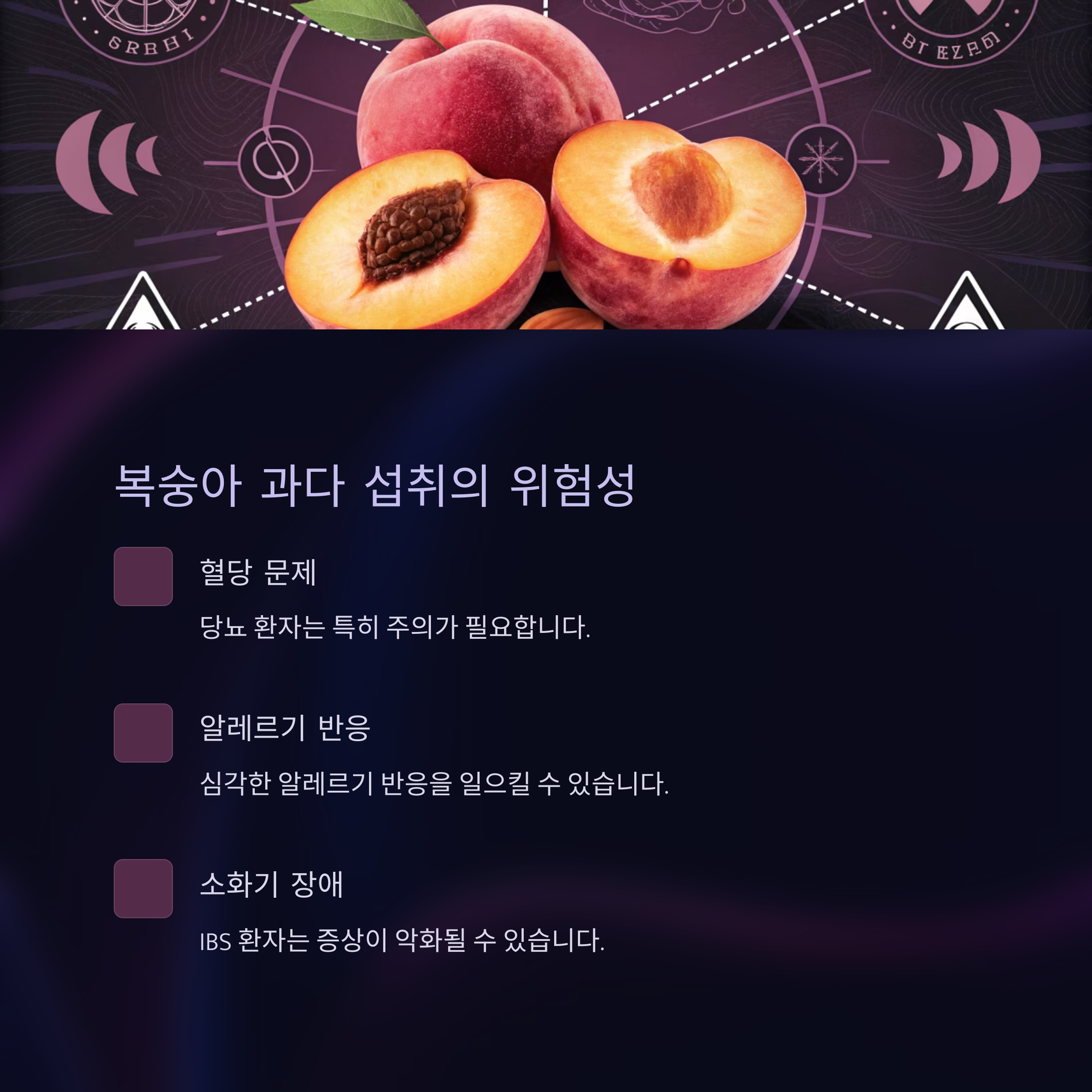 복숭아 부작용 데이터 요약