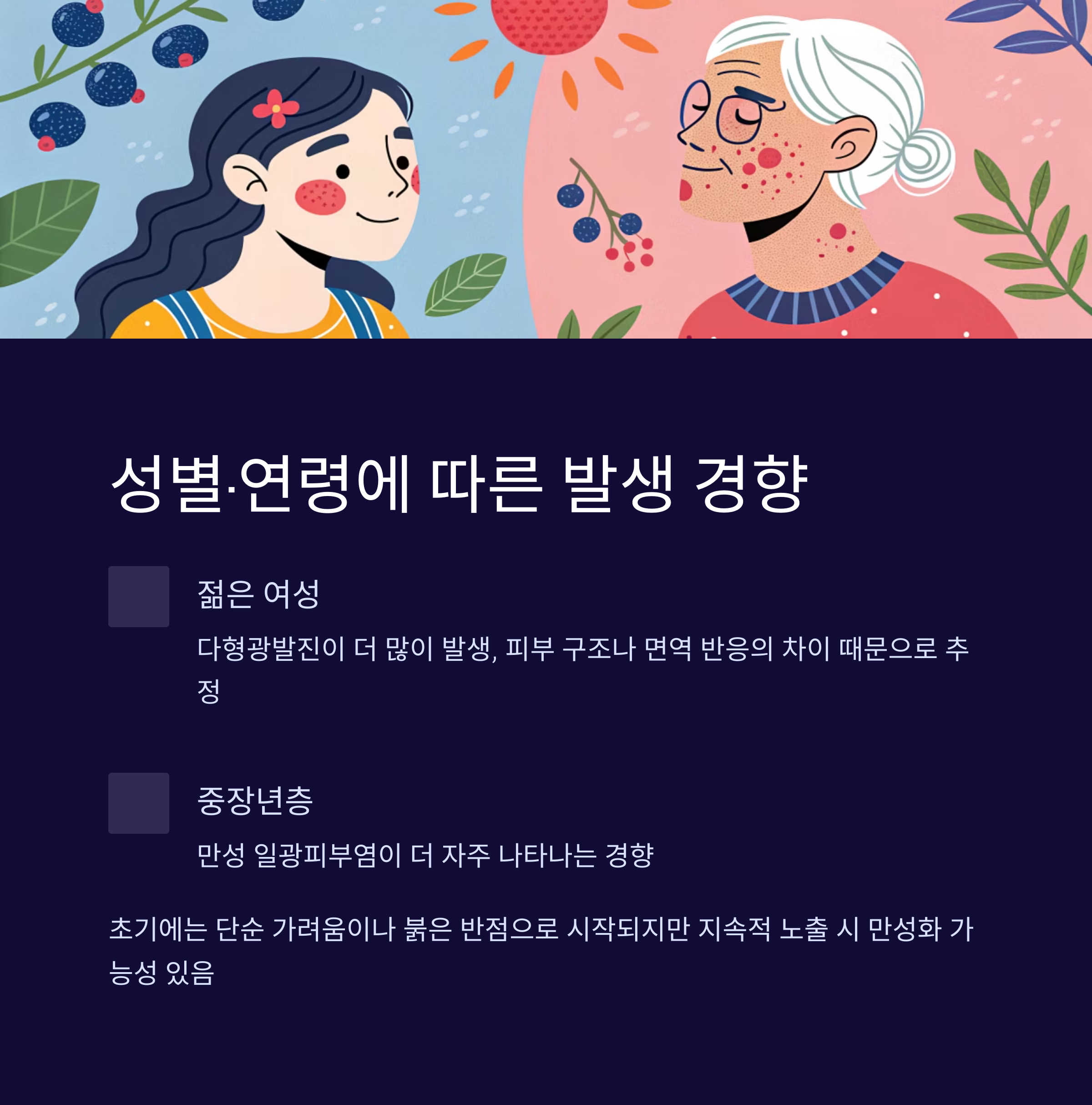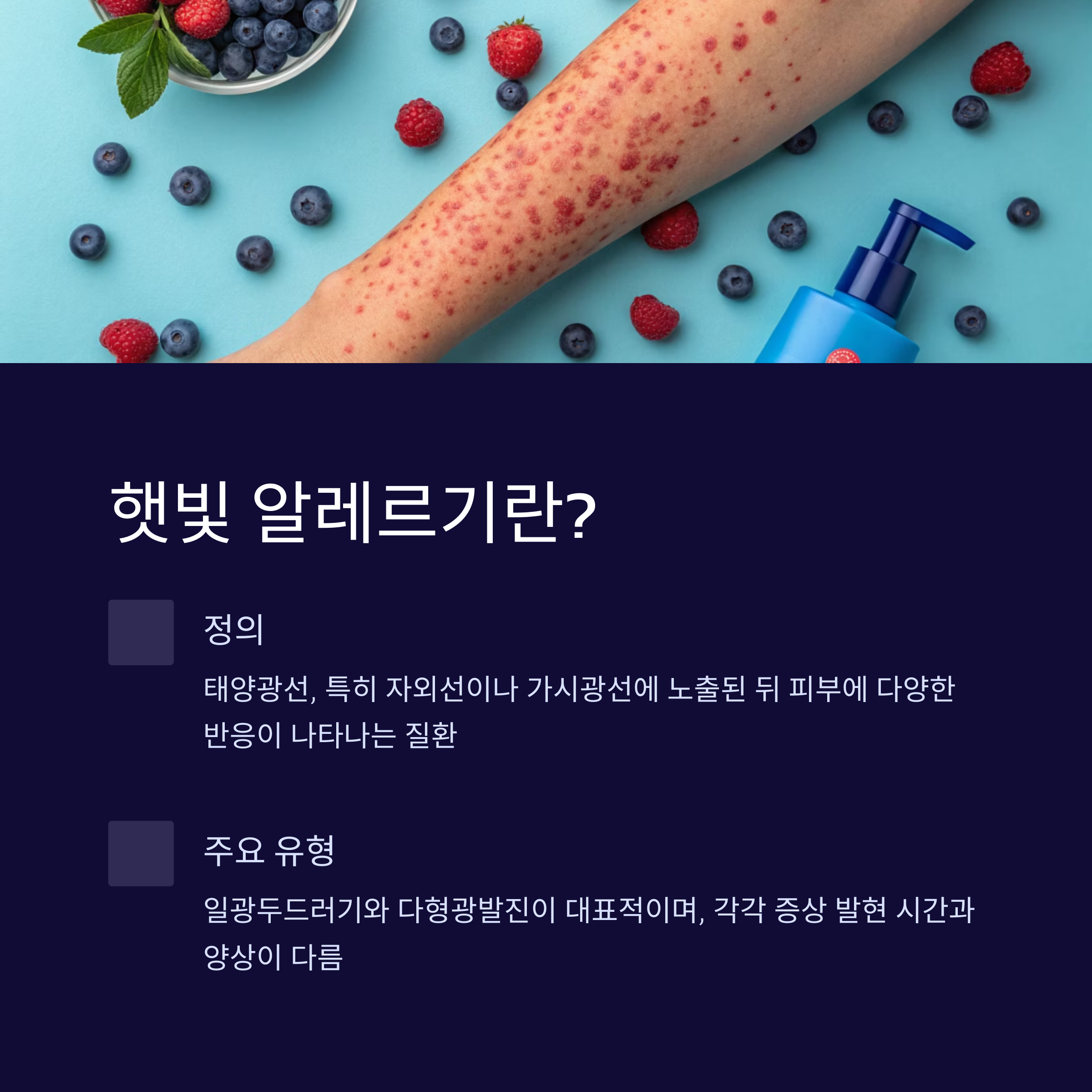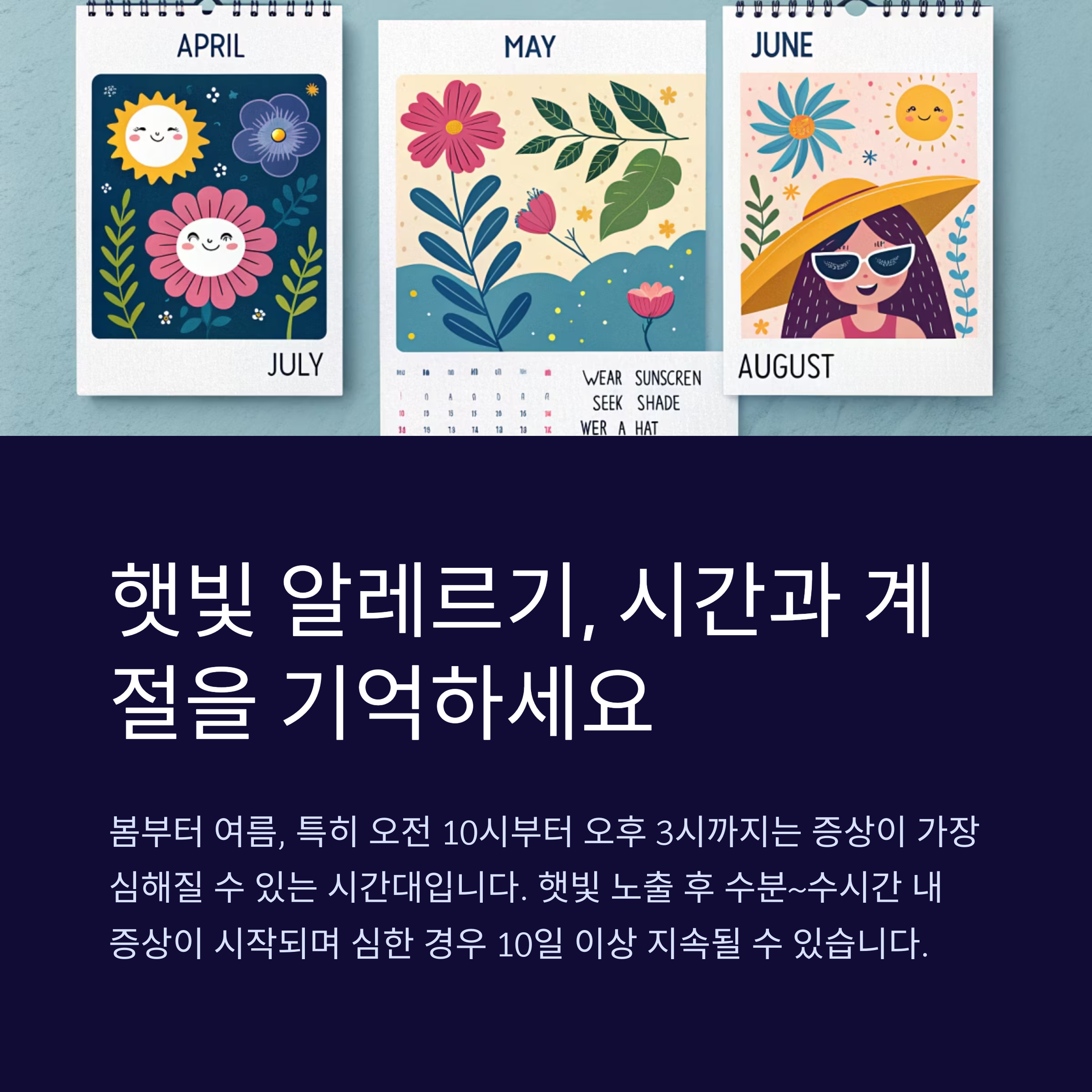 햇빛 알레르기는 계절 변화와 자외선 강도에 민감하게 반응합니다.