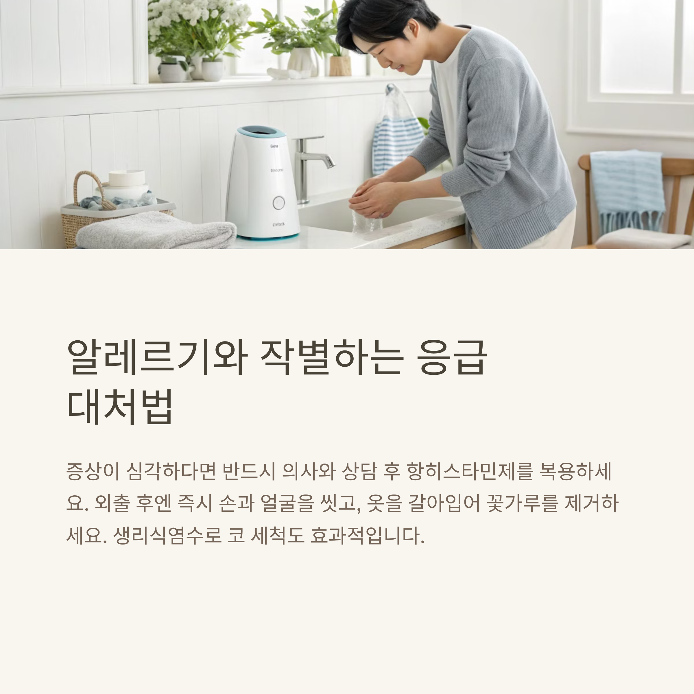 | 알레르기 반응 | 손 세척, 옷 갈아입기 | 충분한 수면, 면역력 강화 |