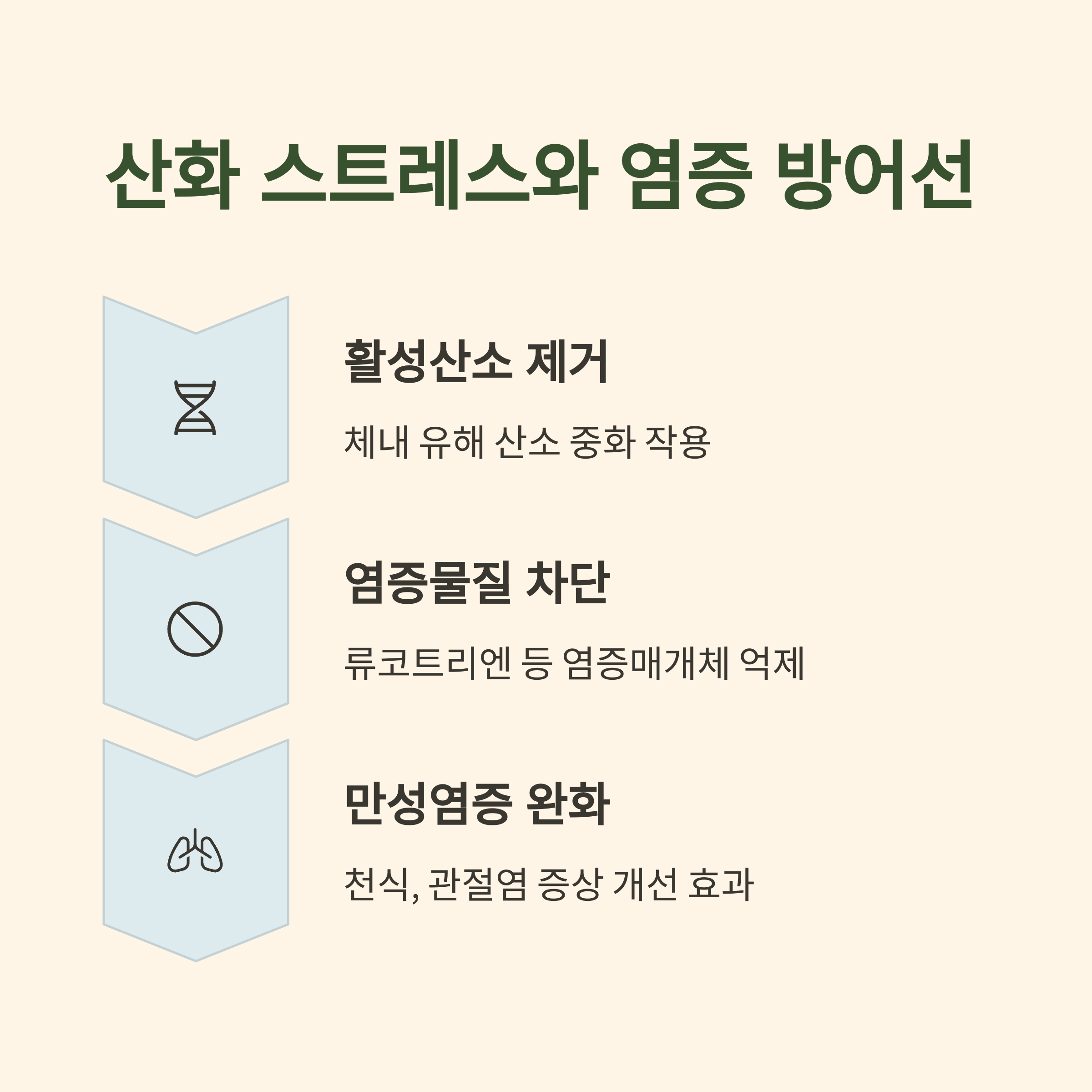 이 성분은 활성산소를 줄여 세포 손상을 방지하고, 항산화 효소를 활성화시킵니다.