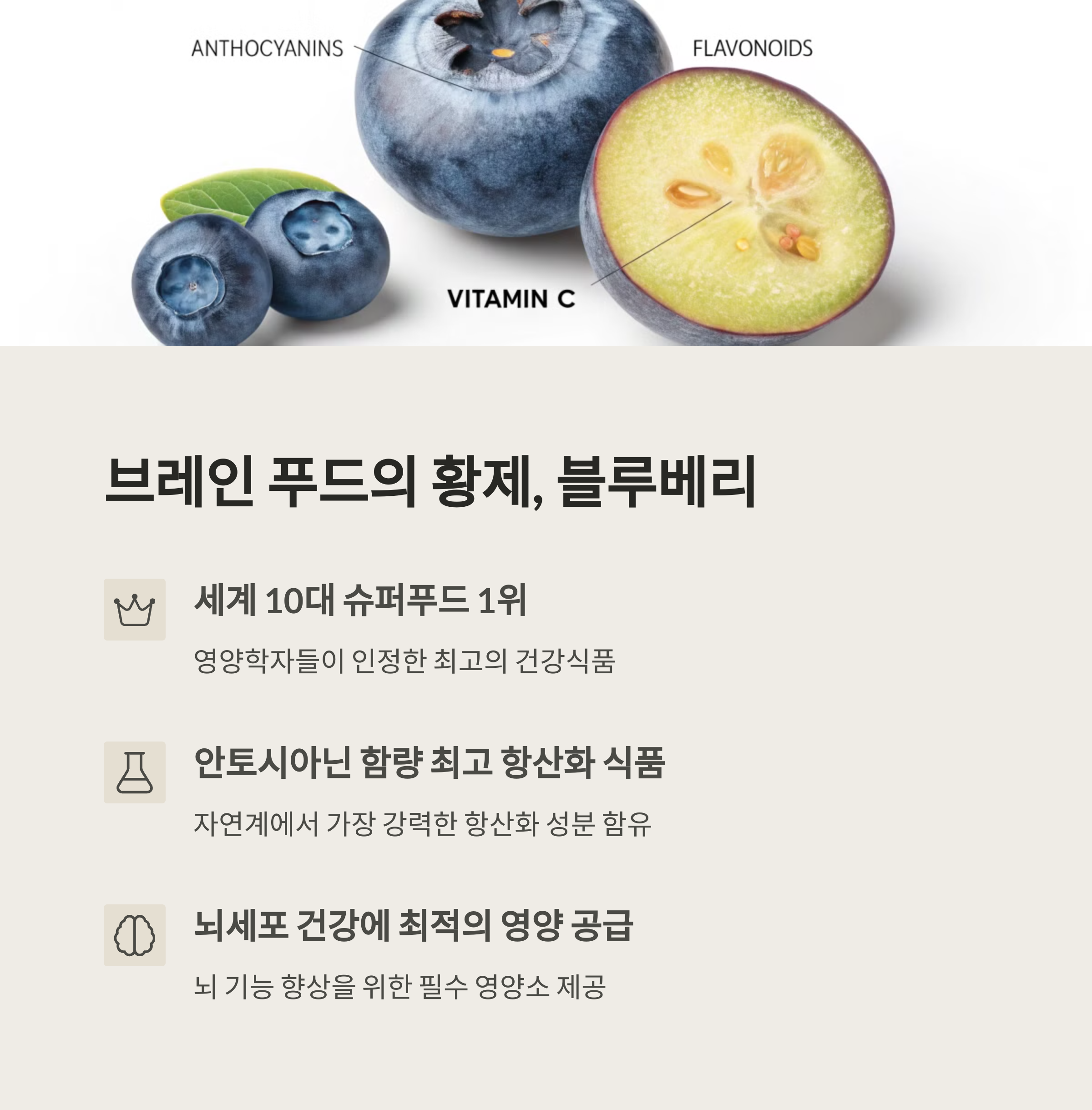 | 블루베리 주요 성분 | 안토시아닌, 폴리페놀 등 항산화 성분이 풍부 |