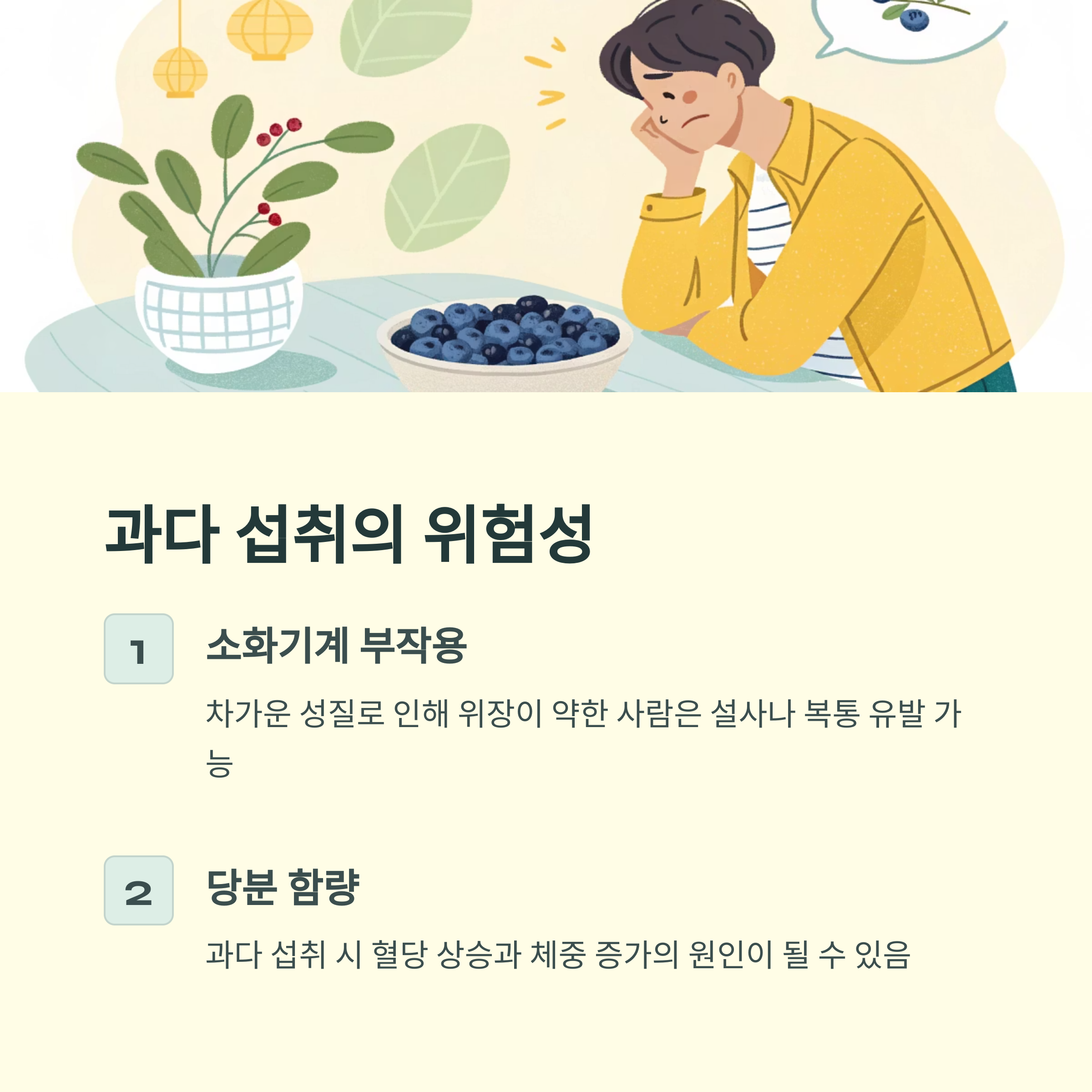 블루베리 섭취 시 몸에 부담을 줄 수 있으니 주의가 필요합니다.