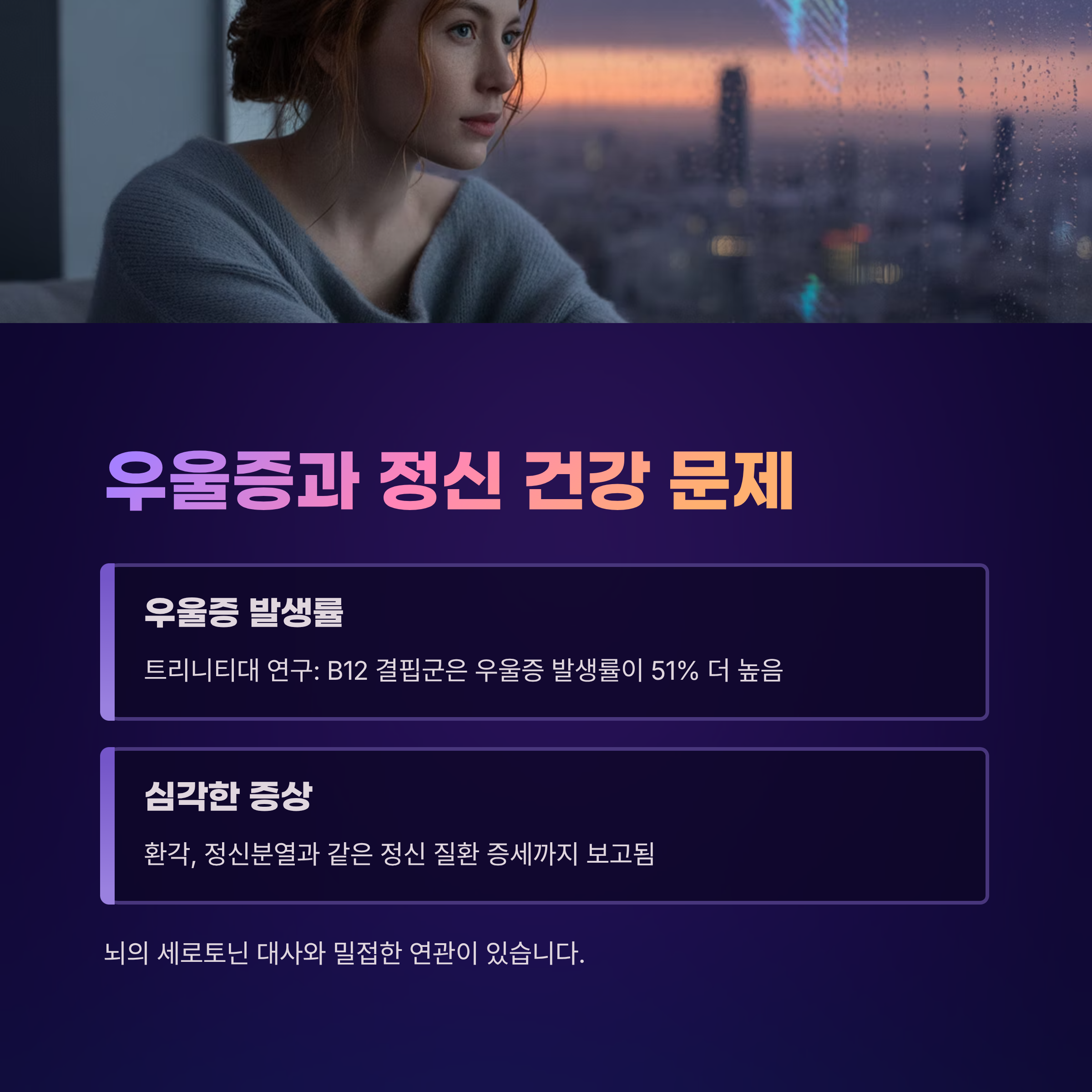 B12 결핍군은 우울증 발생률이 51% 더 높았습니다.