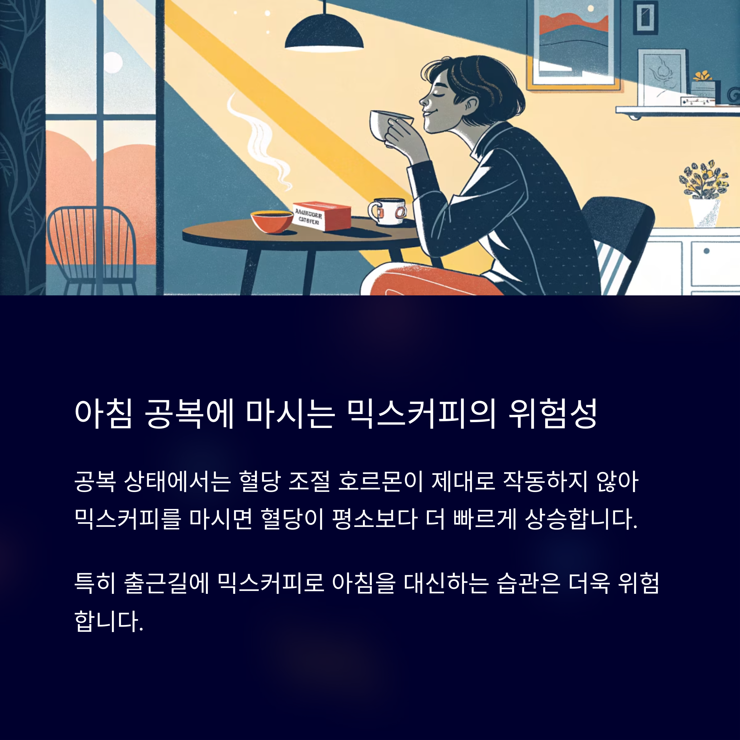믹스커피는 익숙하고 달콤한 맛으로 많은 사람들이 사랑하는 음료입니다. 특히 비 오는 날 따뜻한 한 잔은 감성을 자극하며 위로가 되곤 하지요. 하지만 그 속에 숨겨진 당분과 트랜스지방, 칼로리 등은 혈당을 빠르게 올리고 건강에 악영향을 줄 수 있어 주의가 필요합니다. 이 글에서는 왜 비 오는 날 믹스커피가 특히 위험한지, 혈당과 건강에 어떤 영향을 주는지 상세히 알려드립니다.