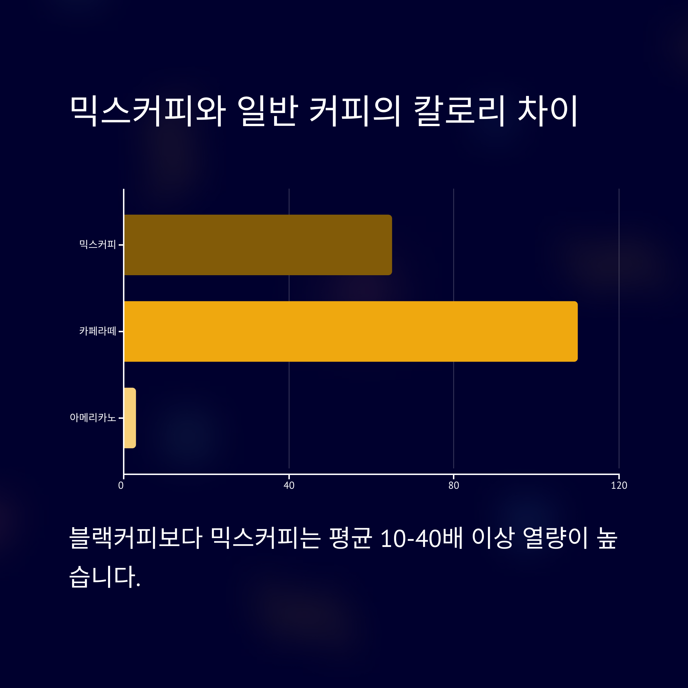 블랙커피보다 믹스커피는 평균 10배~40배 이상 열량이 높습니다.