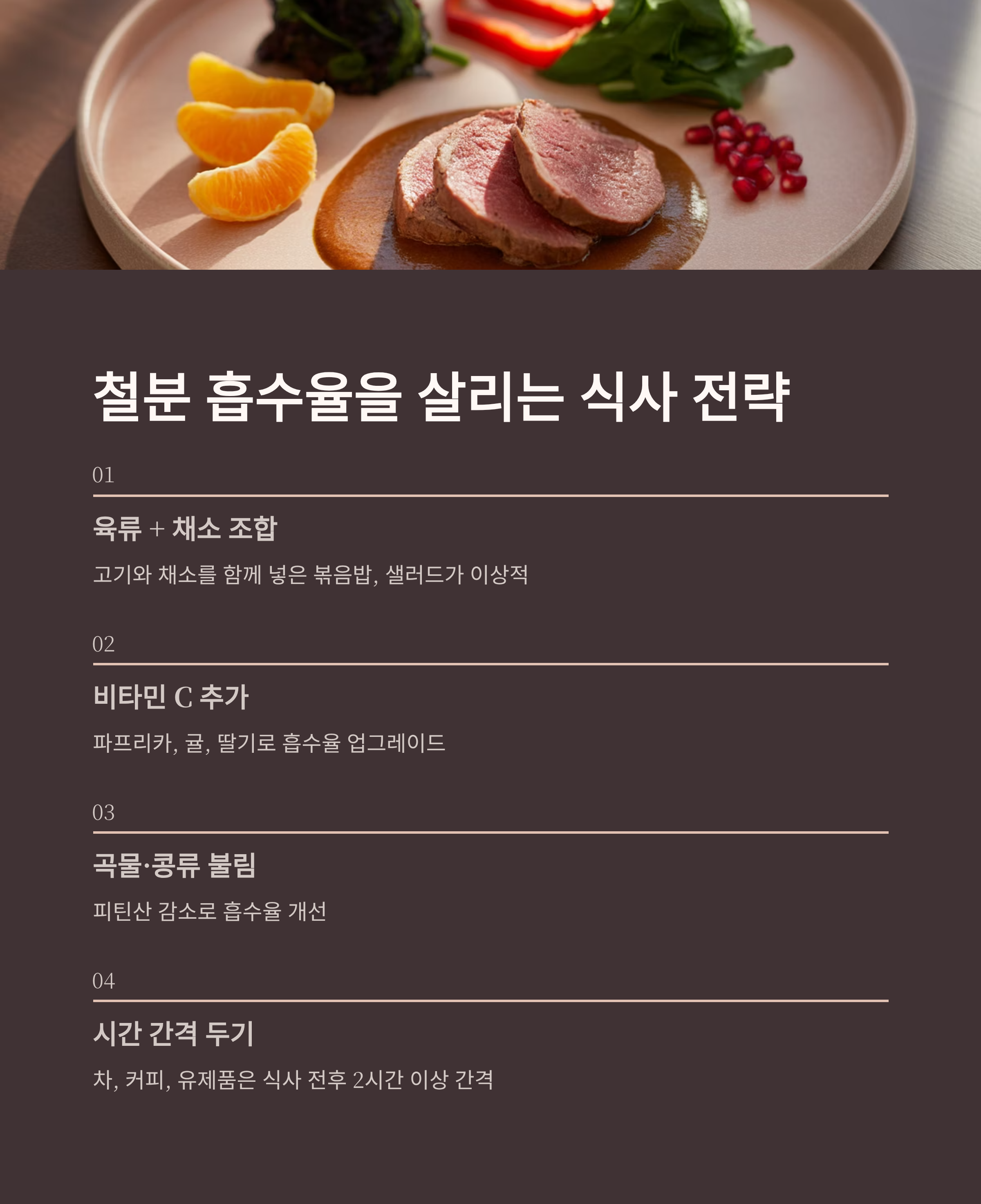 마무리: 빈혈 관리는 음식보다 ‘흡수 방식’이 핵심