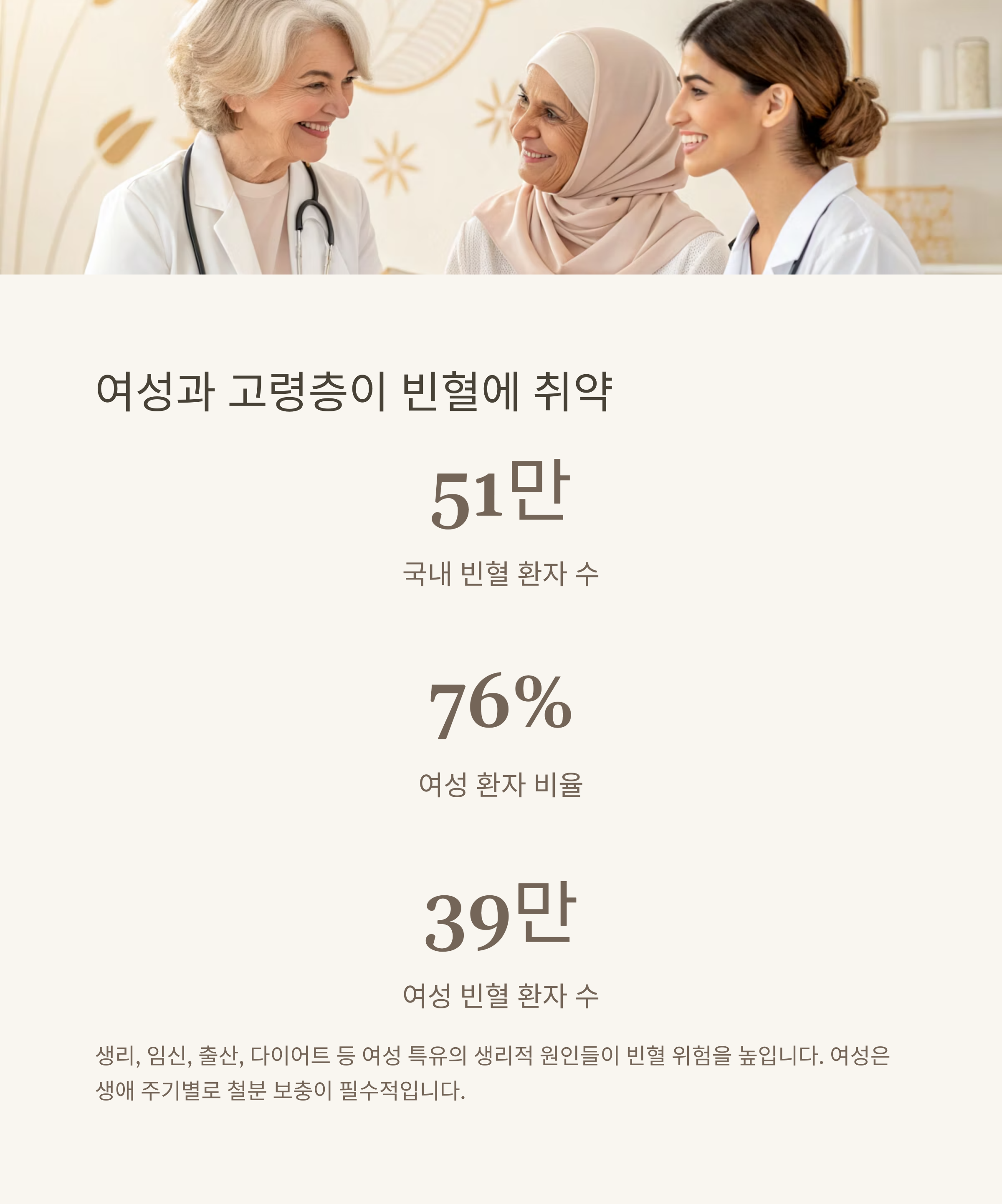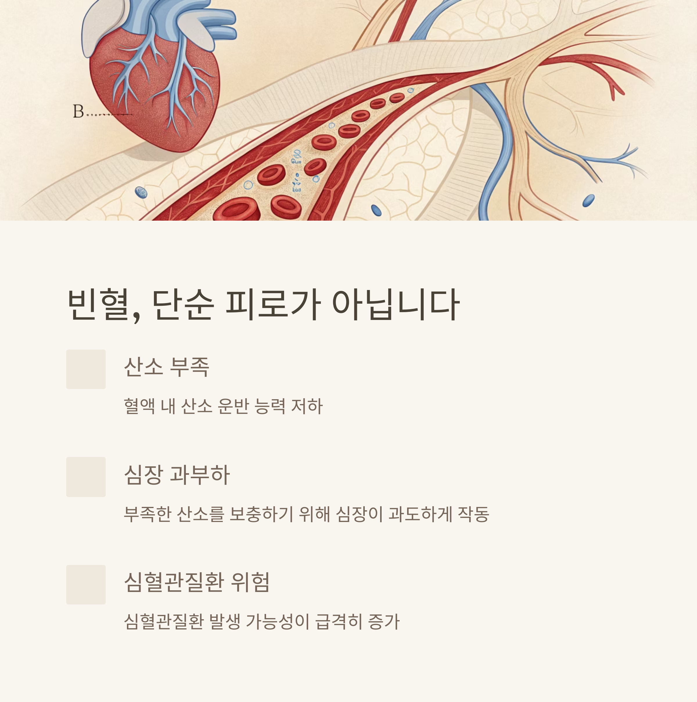 빈혈은 단순한 피로감이나 창백함으로만 그치는 질환이 아닙니다.